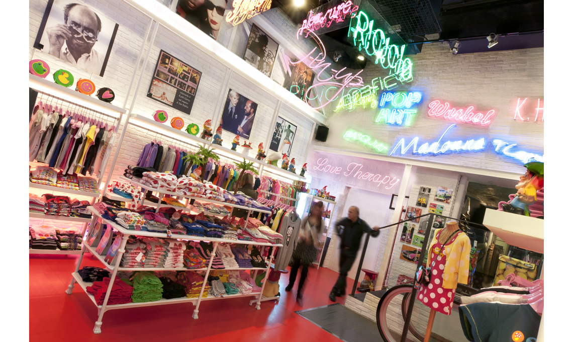 Per i ragazzi di quegli anni, Fiorucci in piazza San Babila era un punto di ritrovo, un negozio indefinibile per l'epoca pieno di abiti, gadget, stampe, opere d'arte, arredi, accessori, dischi, un'esplosione di colori, forme, neon, angeli e oggetti che ti trasportavano direttamente in un negozio d'Oltreoceano. Oggi lo potremmo definire un concept store, ma forse anche questa definizione è 'stretta' perché non coglie il gioco, l'ironia, la magia di quel luogo.