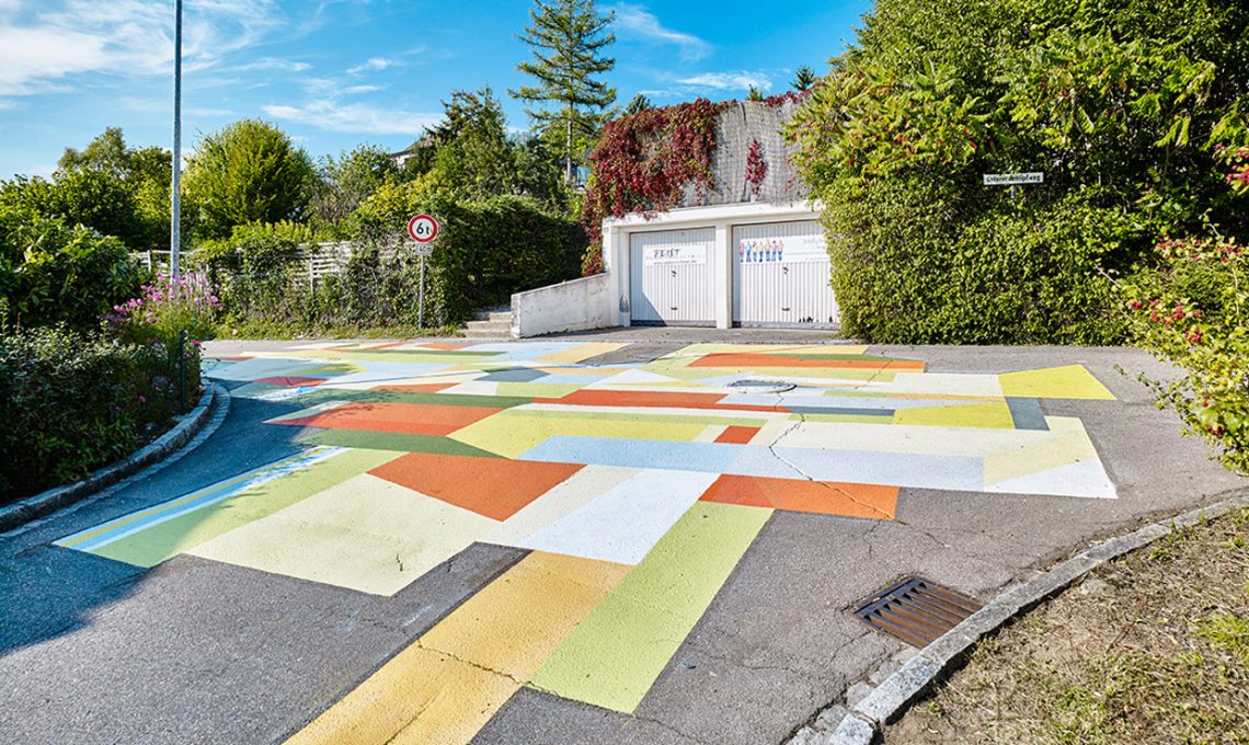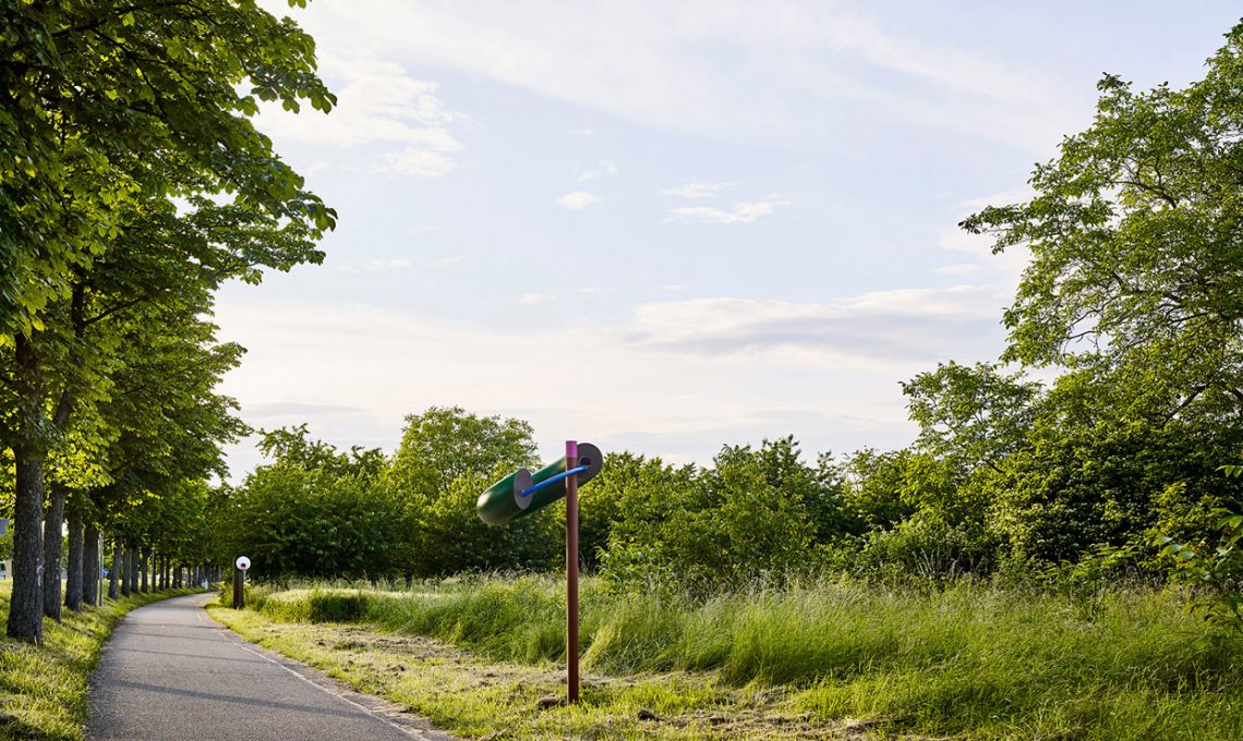 All’inizio e alla fine del percorso sono installate due campane in ottone, che si possono naturalmente suonare; partendo dalla Fondazione Beyeler, si incontrano poi delle uccelliere vuote, appese in alto, e seguendole si arriva ad una fontana montata all'estremità di una grondaia, che assomiglia ad un fiore esotico. C’è poi una stazione meteo che è una scultura cinetica, che si muove in base alla variazione della pressione atmosferica, un segnavento a forma di nuvola, alveari dalle forme curiose e casette per gli uccelli dai colori fluo, orologi a cucù, pattern disegnati direttamente sull’asfalto o sul retro di un garage, cartelli pubblicitari surreali, lampioni, un grande binocolo in cima alla collina e una torretta di avvistamento gialla.