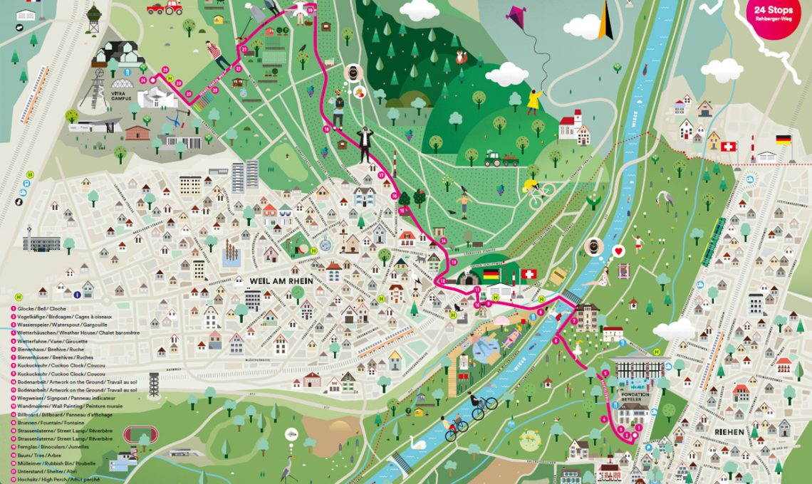 24stops è un'installazione artistica di Tobias Rehberger, che ha progettato 24 oggetti per altrettanti punti di sosta sul Rehberger-Weg, un percorso di 5 chilometri che collega due Paesi (Svizzera e Germania), due cittadine di confine e due istituzioni culturali: la Fondazione Beyeler e il Campus Vitra.