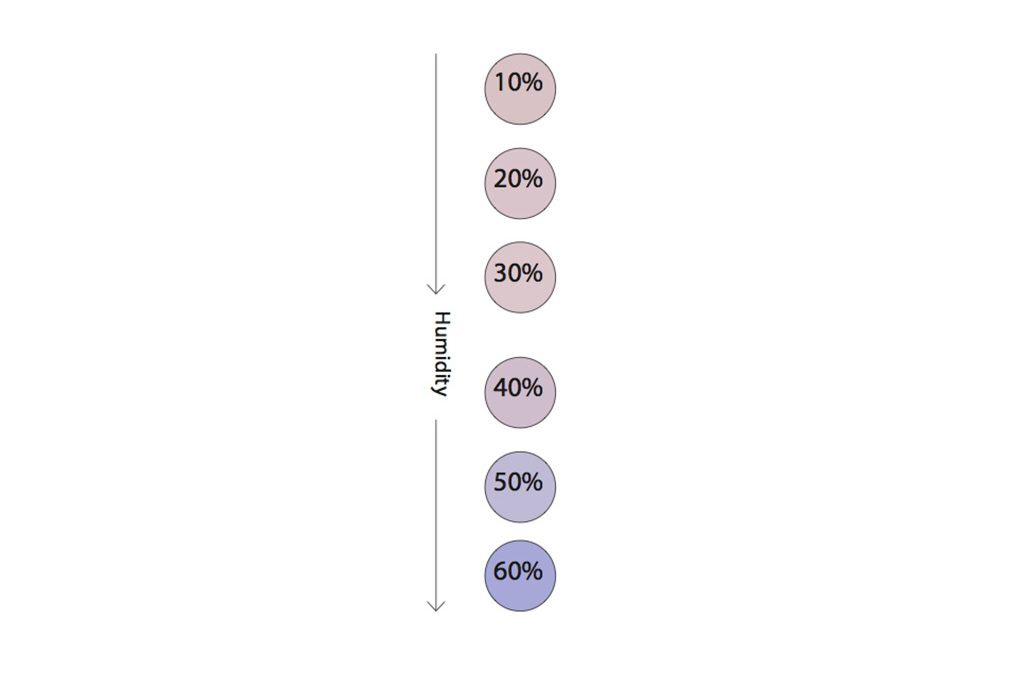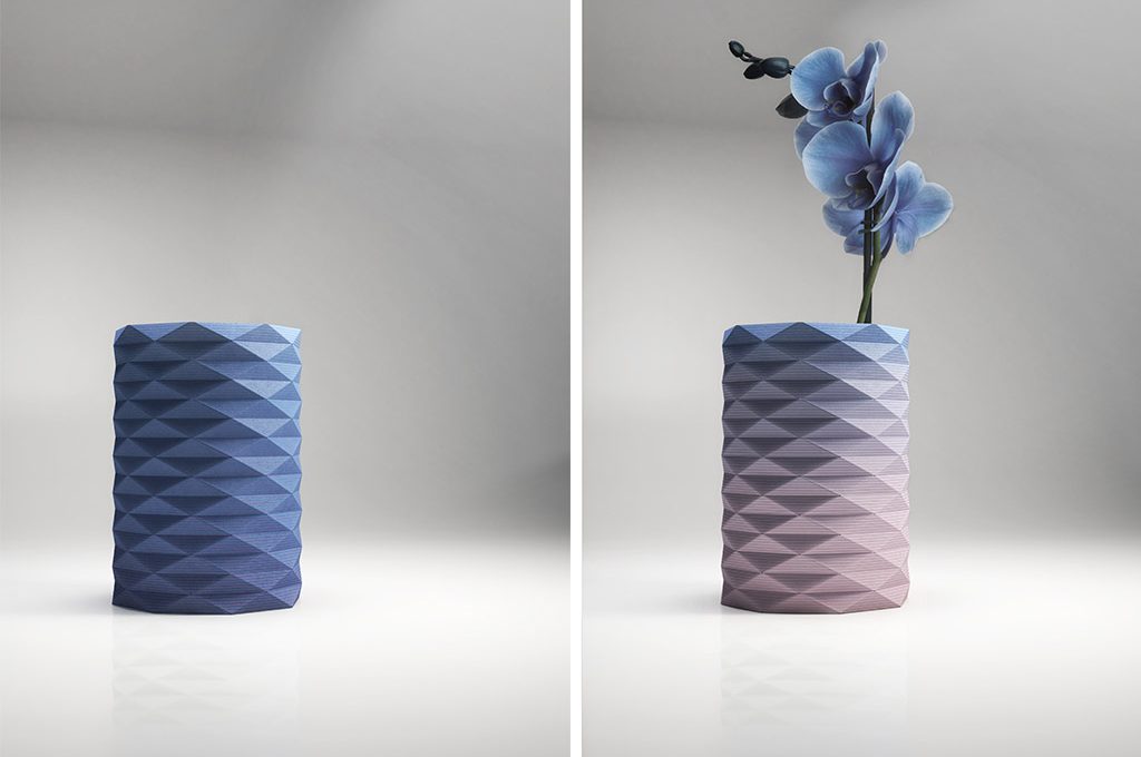 Il principio è quello della cartina tornasole, usata dai chimici per misurare il grado di acidità dei liquidi: nello stesso modo il vaso Huemid, realizzato in cartoncino, è impregnato di un reagente che rivela con diverse colorazioni il grado di umidità. La sfaccettatura della superficie, che serve anche a dare stabilità al vaso, è ottenuta con una pieghettatura a piccoli rombi che consente di schiacciare su se stesso il cilindro, per ridurne al minimo l'ingombro.