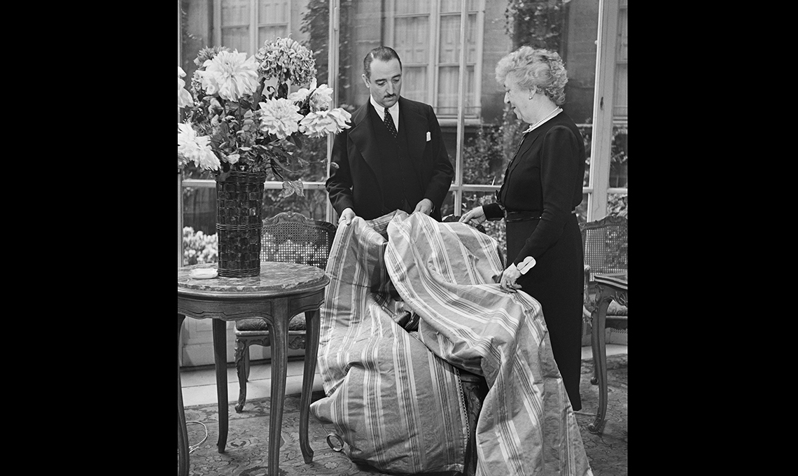 Madam Ritz mentre scegli i tessuti per l'hotel. Foto Roger Schall, collezione Schall.