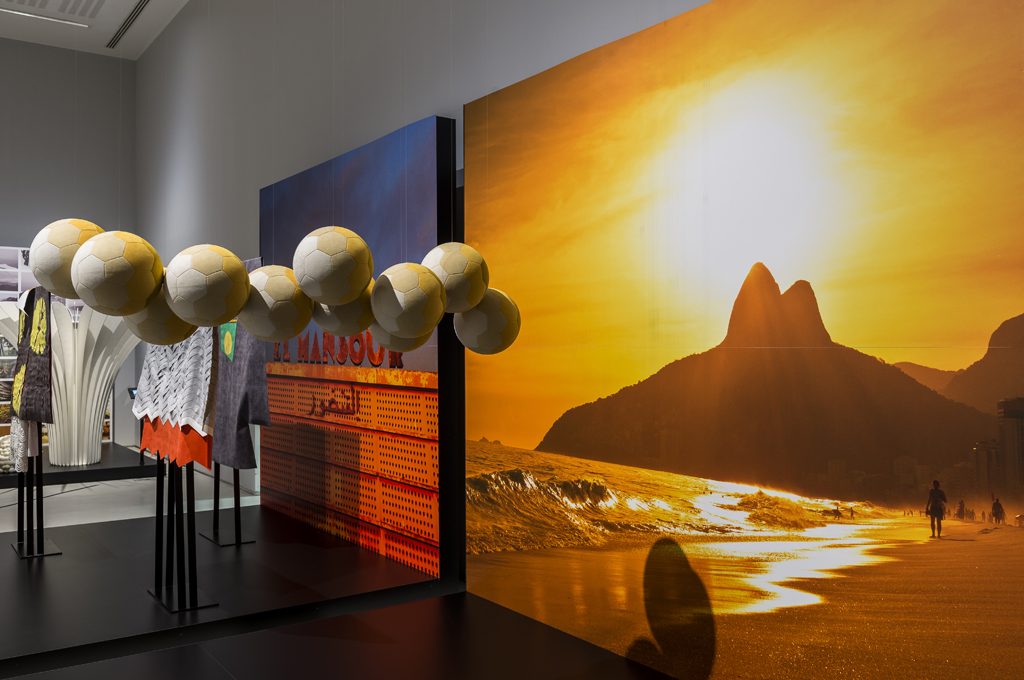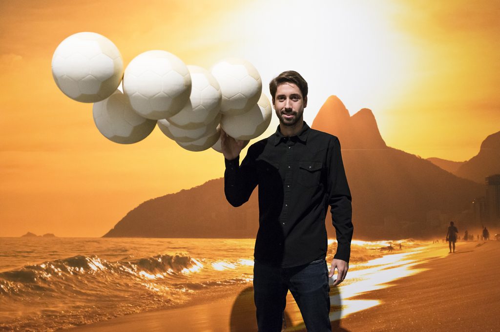 ... infatti il designer Gustavo Martini ha voluto raccontare la città più nota del Brasile con palloni da calcio rivestiti dei toni del tramonto in riva all'Oceano
