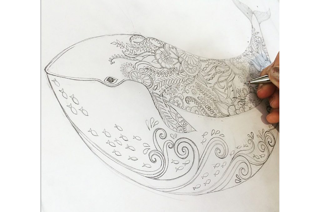 R. Credo che il bianco e nero renda i miei disegni più particolari. Nel caso dei ‘coloring book’, mi piace l’idea di preparare il bozzetto e dare poi a chi si diverte con i miei libri la possibilità di aggiungere la propria personalità con il colore. è come se fosse una mini-collaborazione tra me e i miei ‘lettori’ nel realizzare delle illustrazioni complete e finite.