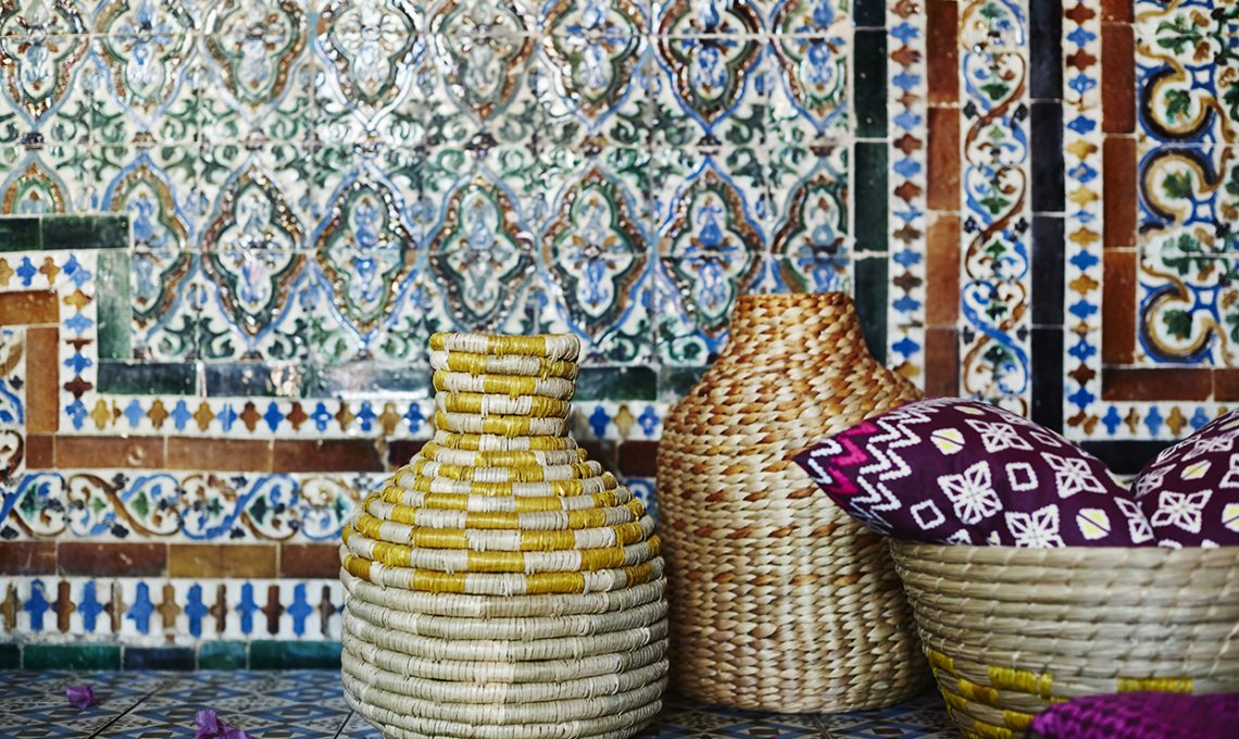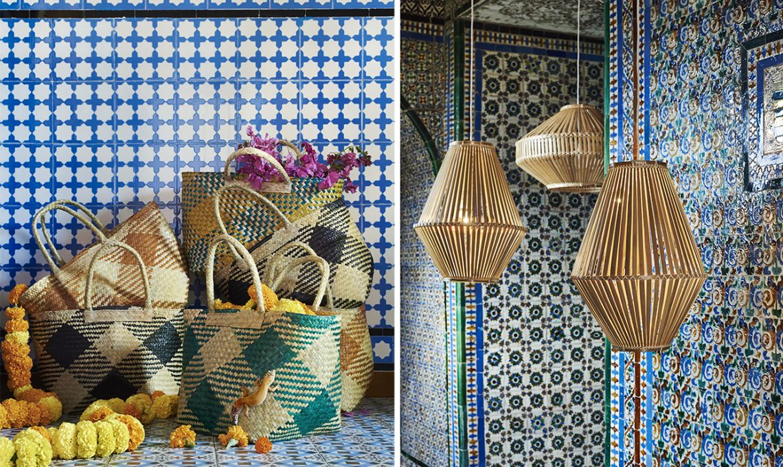 Raffinate sedute in rattan, poltrone, tavolini e un paravento in bambù, tappeti realizzati con fibre naturali, cestini, ciotole e vasi decorativi, lampade a sospensione, piatti, cappelli in foglie di palma e tanti prodotti tessili dalle palette ricercate e coloratissime.