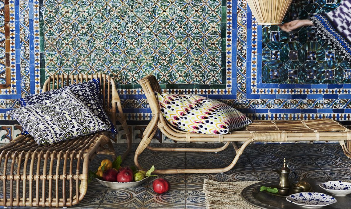 Lo spirito nordico si fonde con i colori ispirati ai batik indonesiani e sposa i materiali naturali come rattan e bambù, lavorati da esperti artigiani