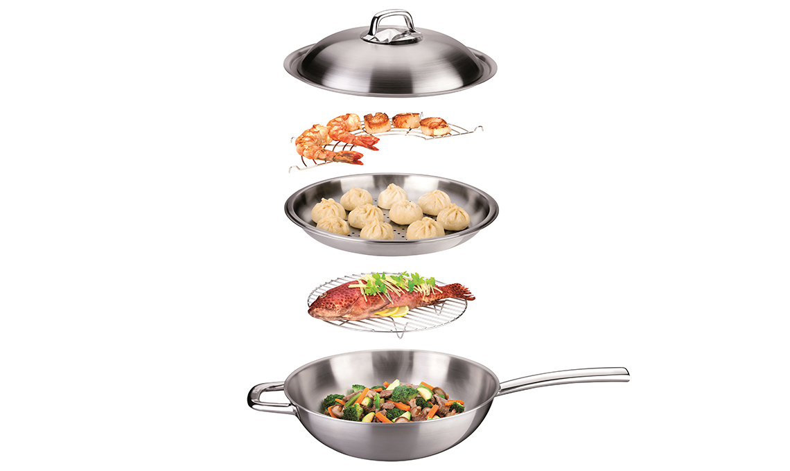 Copia lo stile: il Wok della linea President di Tescoma è in acciaio inox con fondo a triplo strato, perfetto per friggere e per cuocere cibi asiatici e tante pietanze in modo leggero