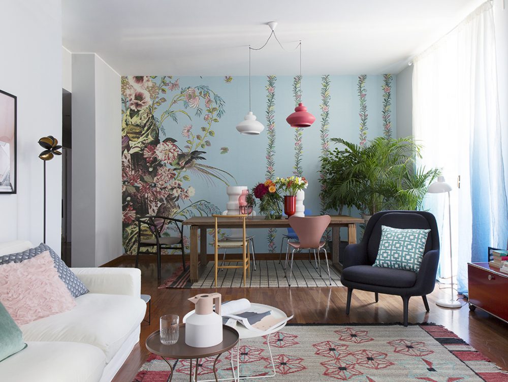 A seconda della combinazioni di colori si creano carte da parati adatte ad ogni stanza, colori pastello o tinte più decise, da spazi dedicati all'ufficio ma anche soggiorni, camere e camerette.