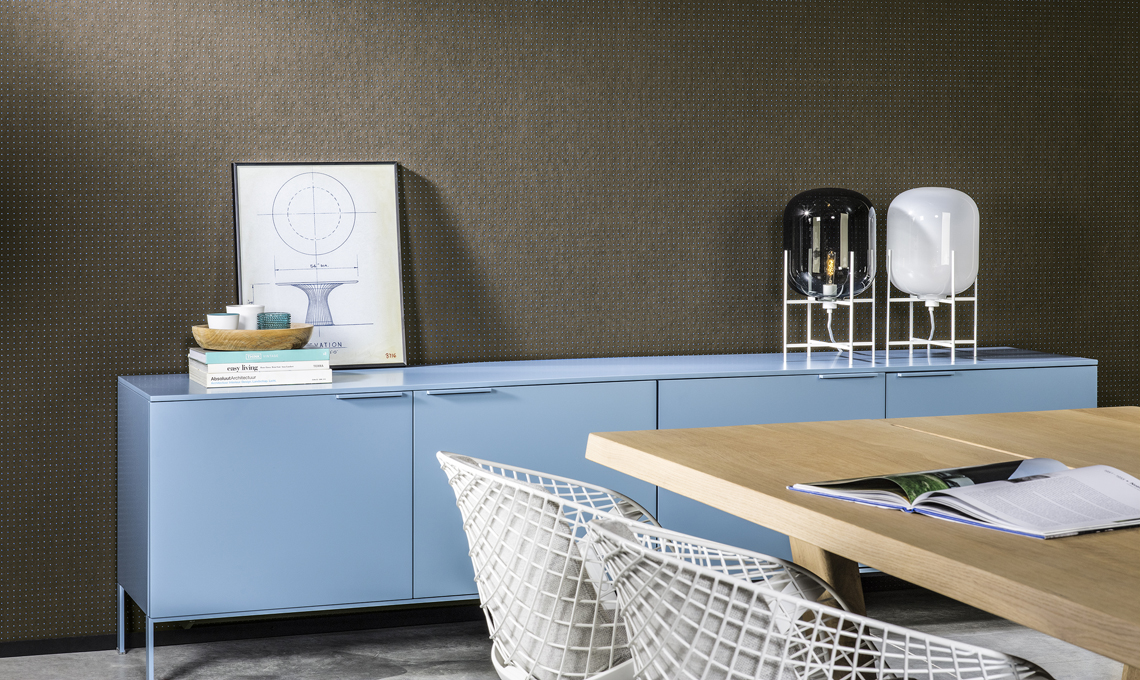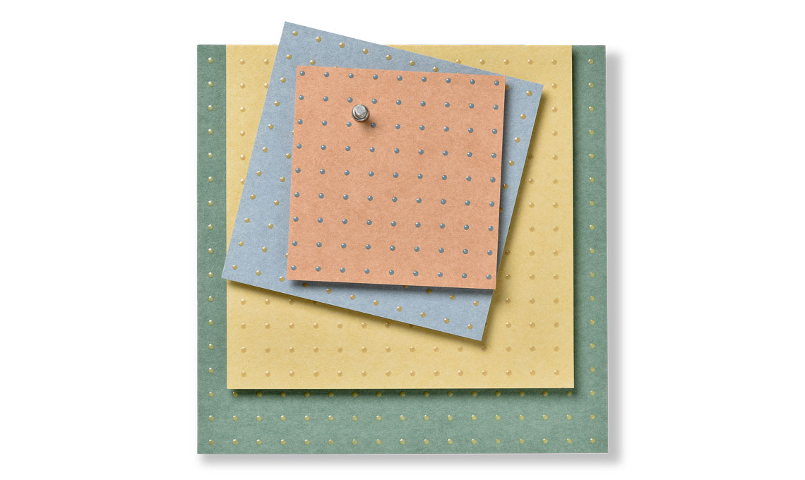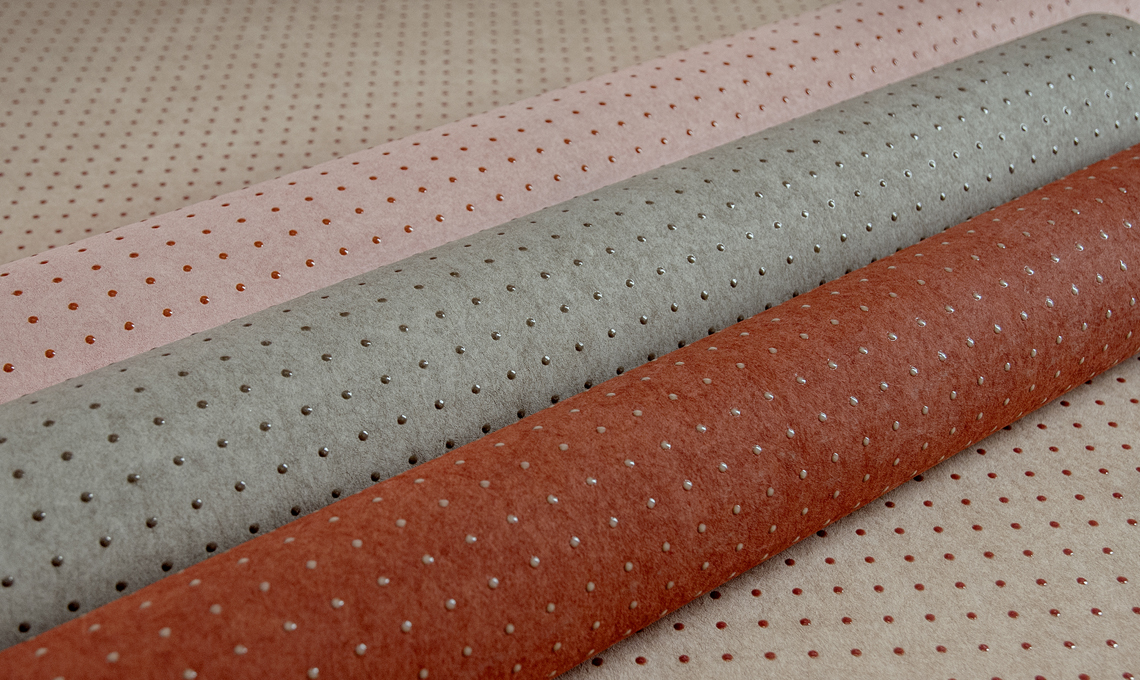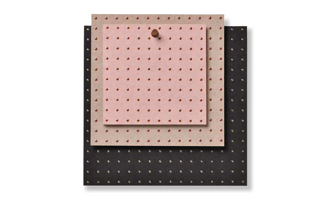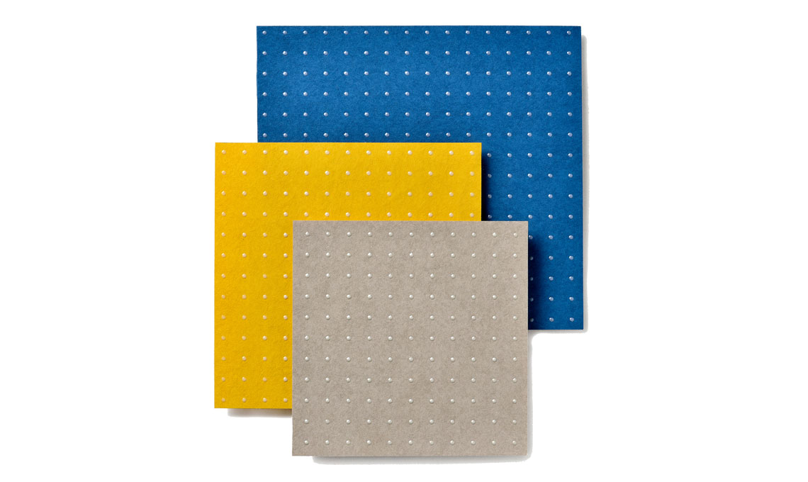 I piccoli pois a rilievo hanno una finitura lucida che dà luminosità al pattern. Il colore è il vero protagonista della collezione: 63 colori per 40 combinazioni secondo la 'Polychromie architecturale' sviluppata da Le Corbusier.