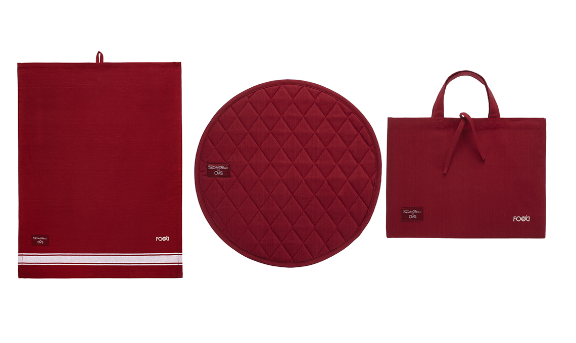 OVS presenta una collezione dedicata alla tavola realizzata in collaborazione con lo chef stellato Davide Oldani. Presine, guanti da forno, canovacci, grembiuli, runner e tovagliette, in tre colori, rosso, nero e fantasia vichy bianco e nero in omaggio ai colori del ristorante dello chef D'O.