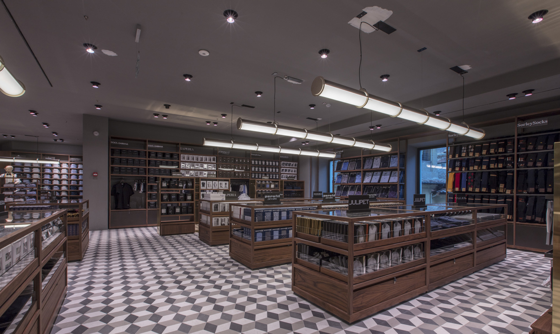 Lo store incorpora e avvolge, inoltre, un piccolo edificio dei primi del ‘900 denominato “Palazzetto” che diventa parte integrante e suggestiva dell’architettura espositiva.