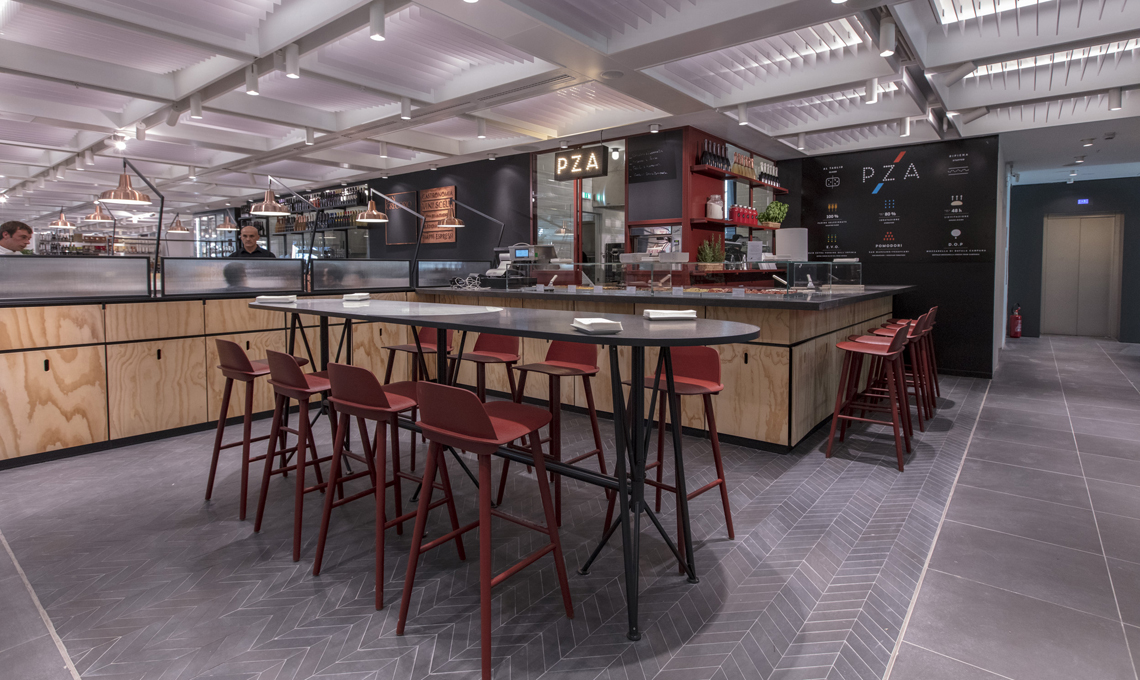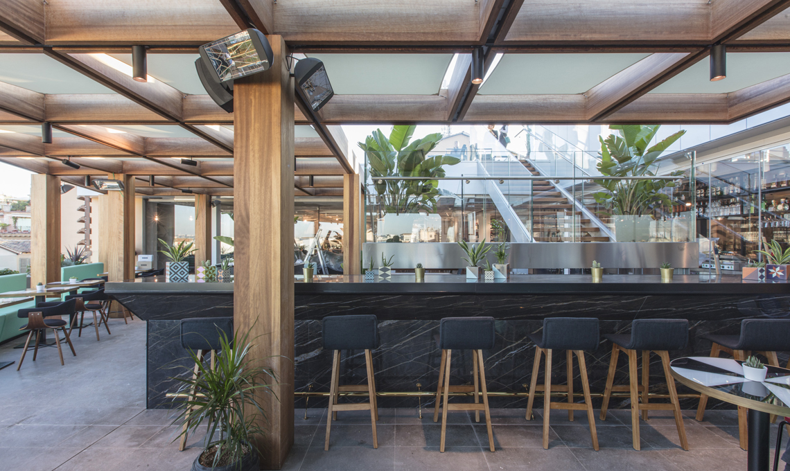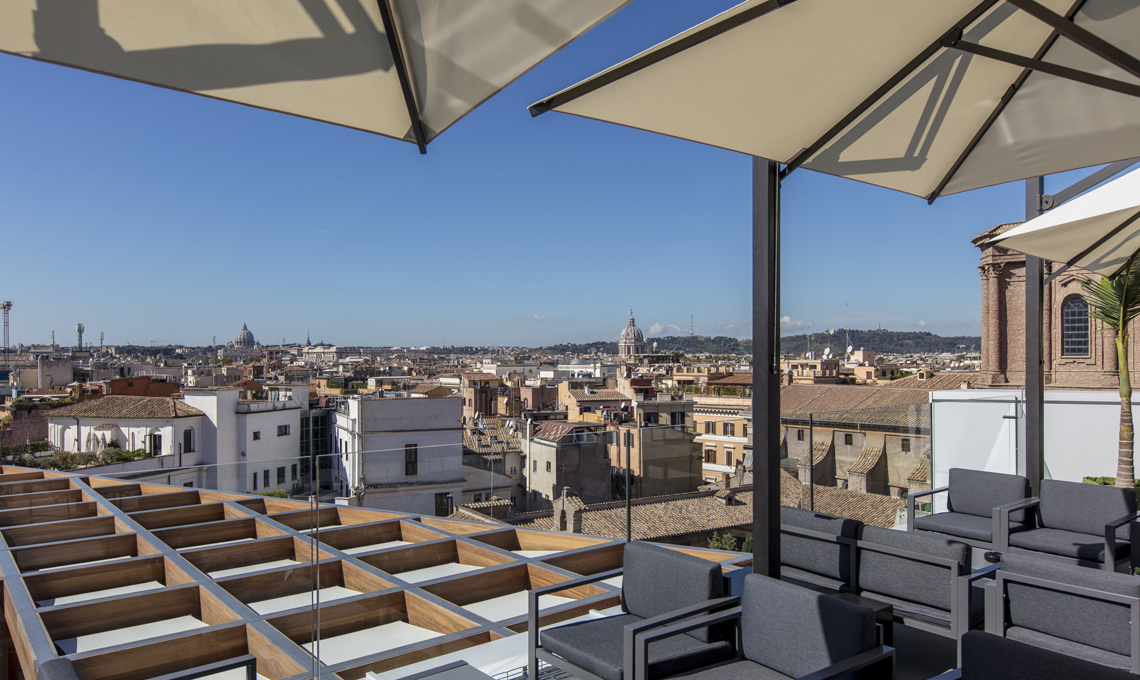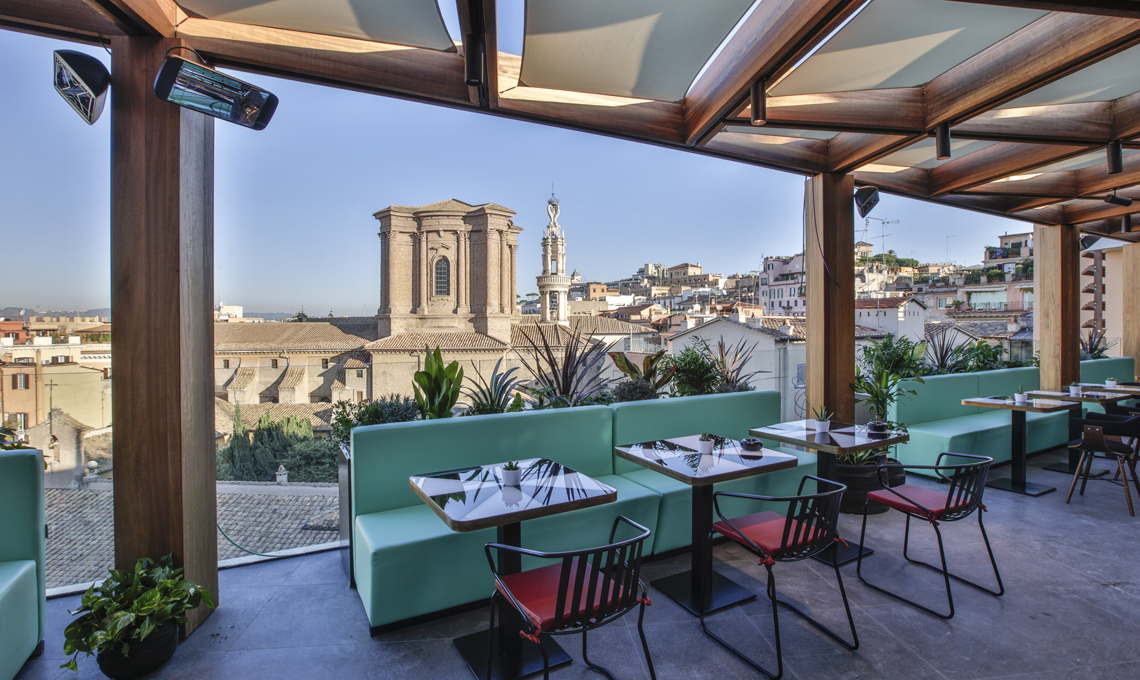 Al sesto piano si trova la Food Hall (il progetto è stato affidato allo studio londinese Lifschutz Davidson Sandilands) con le sue terrazze panoramiche: qui la vista si apre a più di 180 gradi sui tetti della città. La cupola di San Pietro, la Basilica di Sant’Andrea delle Fratte, il Campanile del Borromini, Villa Borghese, il Quirinale, Monte Mario e infinite altre meraviglie sono perfettamente visibili.