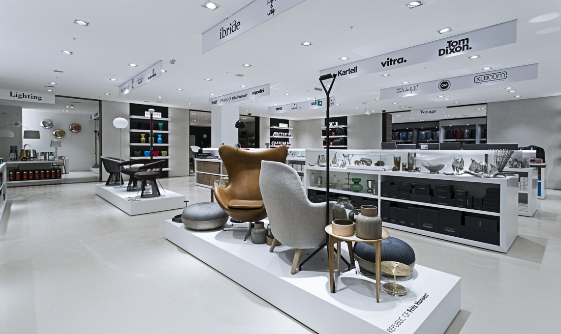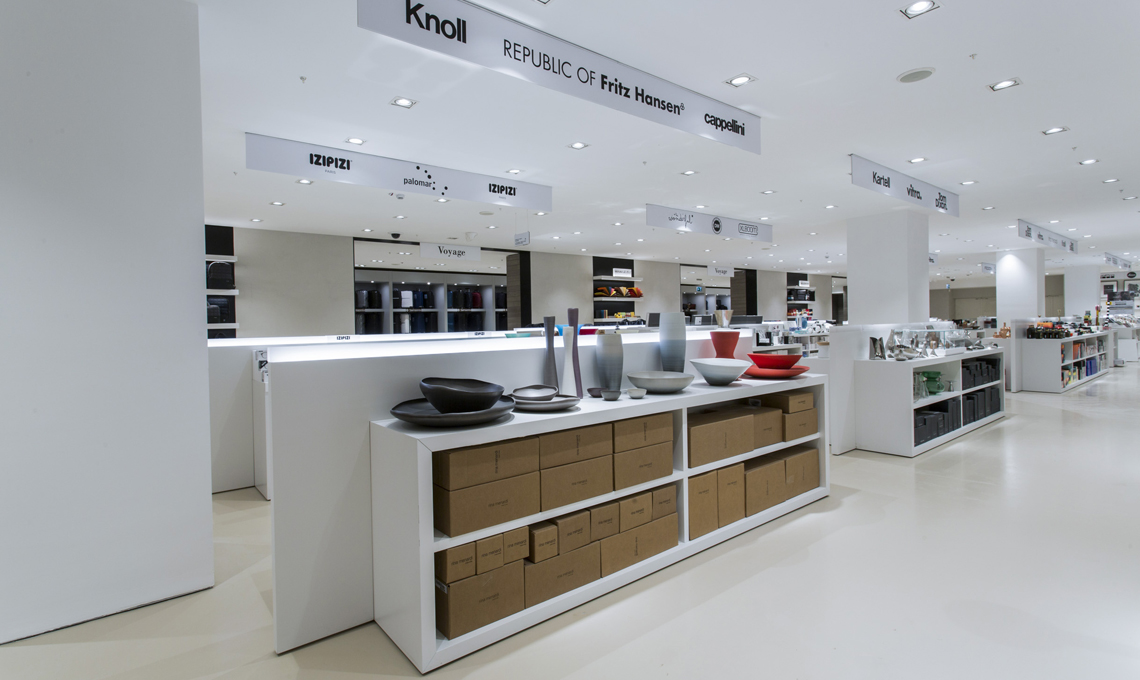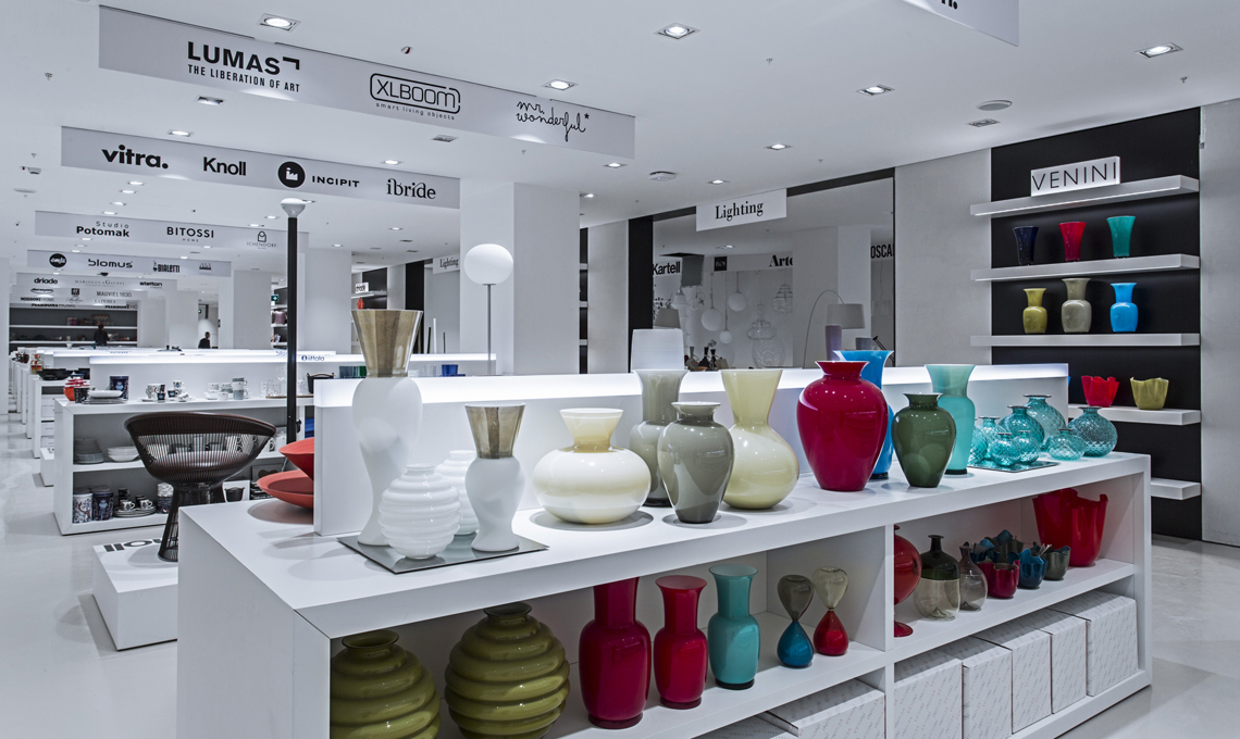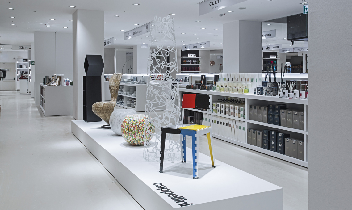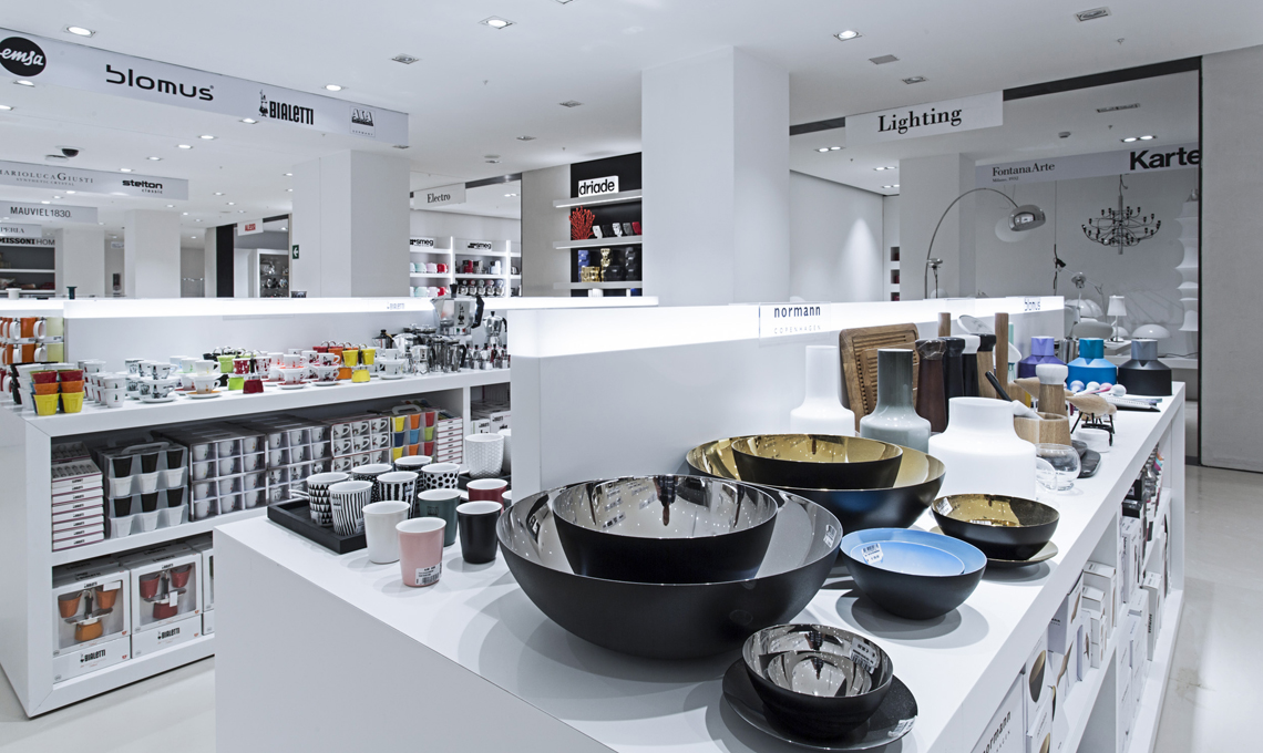 Anche in questo punto vendita non manca il Design Supermarket con grandi classici e marchi innovativi. Gli oggetti spiccano in un ambiente chiarissimo ed elegante.