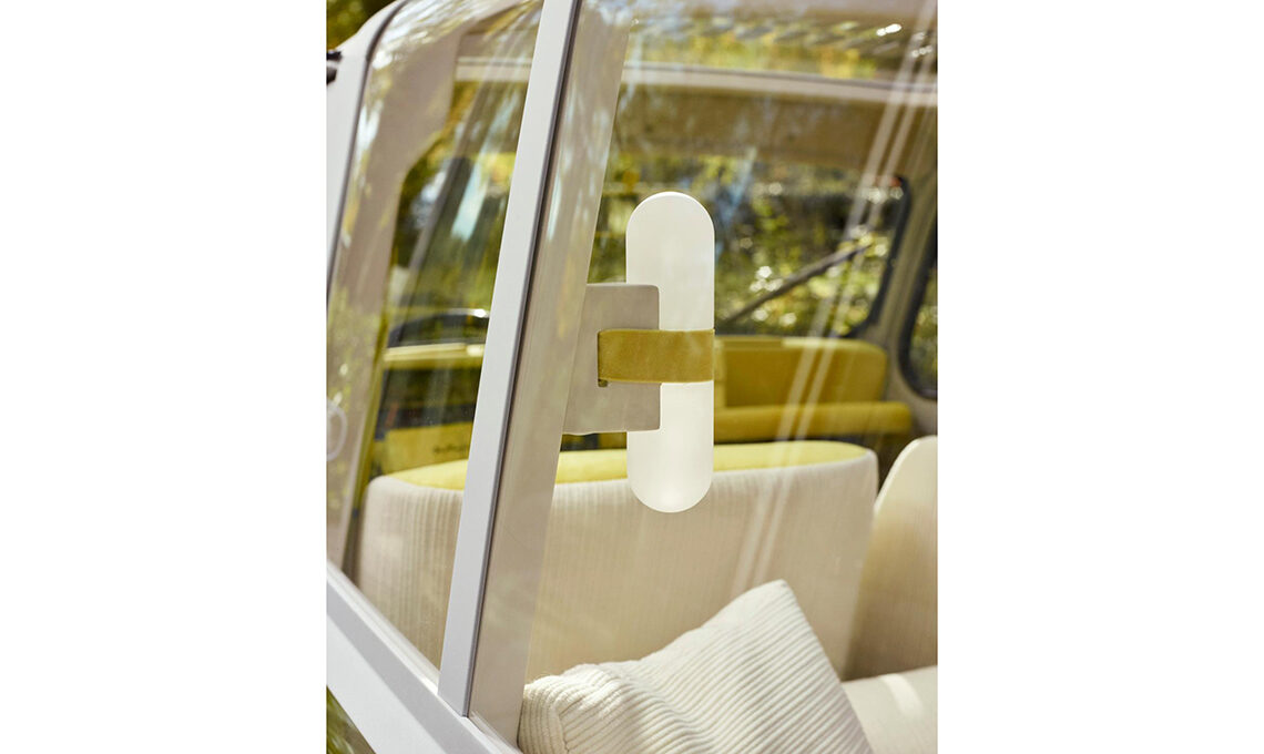 100% elettrica, ha vetri trasparenti sopra e ai lati, cuscini di velluto e ciniglia, panca scorrevole e... due applique! Sarà presentata durante la prossima edizione del Salone Maison&Objet, che si svolgerà dal 21 al 25 gennaio 2022 al Parco delle Esposizioni di Parigi Nord Villepinte.