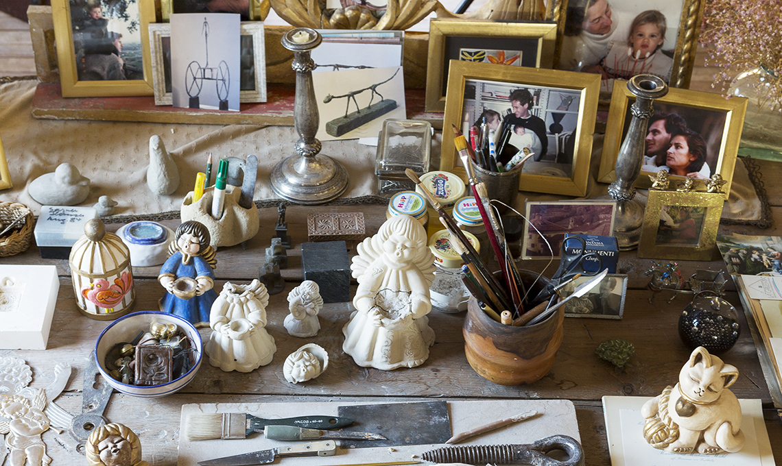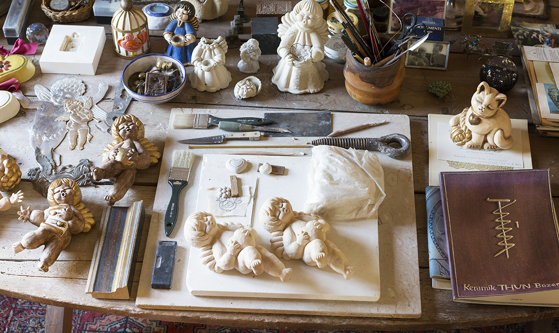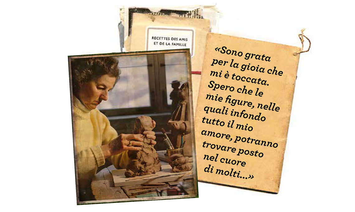 Al rientro, siede fino a notte fonda al tavolo da lavoro invaso di pennelli e arnesi appuntiti; a fianco c’è sempre qualche cesto ricolmo d’argilla. È lì che affonda la mano, smuove la materia; poi assembla e liscia, ritocca e affina. Pian piano i dettagli emergono, affiorano come sabbia dall’acqua. Negli anni, a bordo della sua vecchia Renault, trasporterà tonnellate di argilla. Lavorerà sodo, fino al calar della sera, dimenticandosi spesso di accendere la luce. E darà corpo, identità e forza a quelle forme tondeggianti che fanno parte della storia di tutti noi. «Le idee abbandonano quelli che smettono d’interessarsi al mondo intorno a loro», usava dire la Contessa.