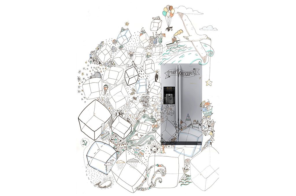 "Amo il disegno e la creatività tutta. Adoro anche il freddo e i paesi nordici perché vengo da un'isola del Mediterraneo dove, per i miei gusti fa troppo caldo. Per la mia illustrazione ho pensato di far uscire dal dispenser del frigorifero tanti cubetti di ghiaccio e ambientare in mezzo a loro, un paesaggio da Polo Nord con tanto di pinguini che giocano, balene, imbarcazioni ma anche cocktail, coppe gelato, ghiaccioli. Il freddo declinato in modo spiritoso, è così che ho immaginato l'illustrazione per Make it wonderful".