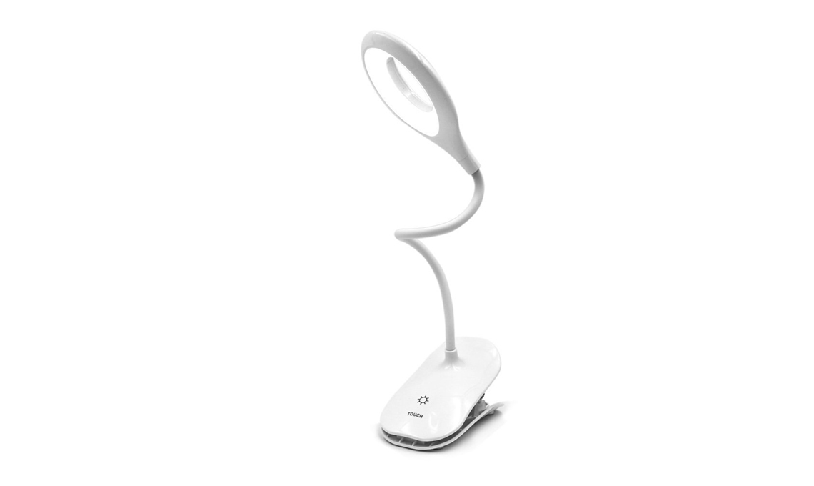 Lampada da lettura con 22 luci led e struttura a collo d’oca per regolare a piacimento la posizione, comodissima da pinzare alla testata del letto