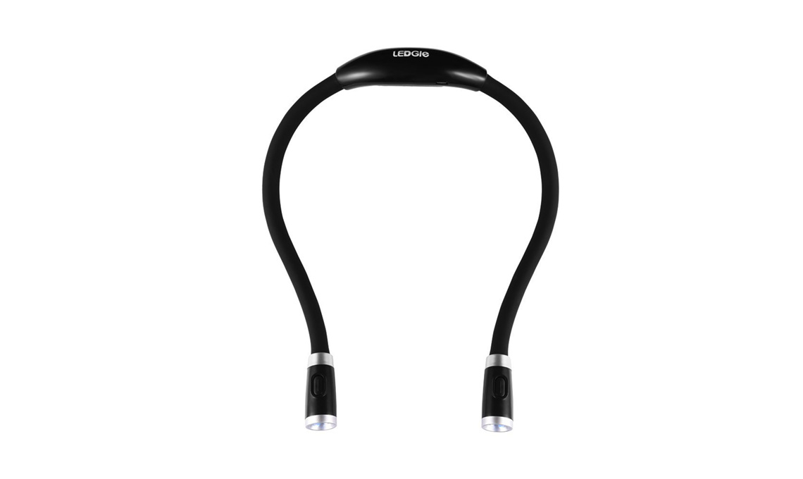 Doppia luce wearable e flessibile ricoperta in gomma, da mettere intorno al collo, consente di avere le mani libere per leggere o fare altro