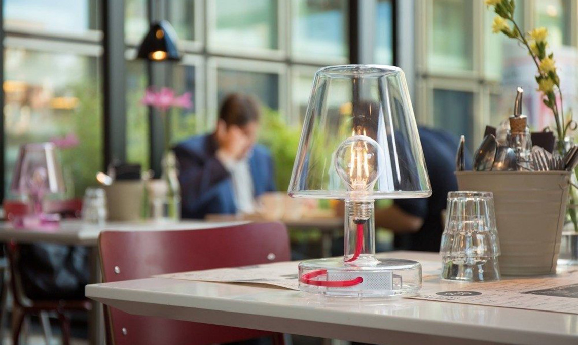 L’abat-jour reinventata, ricaricabile e trasparente, l’efficienza di touch e LED e un nome impronunciabile (Transloetje). Icona.