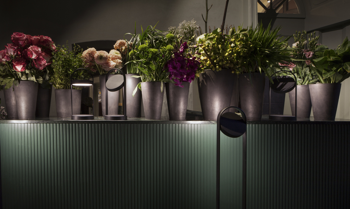 Le lampade wireless ricaricabili Giravolta sono state scelte perché a loro volta si ispirano alle lanterne: sembrano fatte apposta!