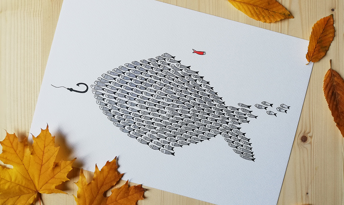 Laura, vicentina, dopo il Liceo Artistico e una pausa dal disegno, ha ripreso a creare illustrazioni seguendo il suo cuore, disegnando in ogni momento libero, prendendo spunto da ciò che era intorno a lei. Crea perlopiù disegni in bianco e nero, dai tratti grafici, con qualche piccolo tocco di colore qua e là, rappresentando storie e scene semplici, che spesso contengono profondi significati nascosti da interpretare a proprio piacimento. Crea anche delle bellissime illustrazioni tridimensionali che fanno venire voglia di scoprire cosa si può trovare dietro ad ogni disegno. DrawingFish rappresenta il suo essere un po’ ingenuo e innocente, è la parte in cui libera la fantasia, dove non ci sono limiti e tutto è possibile.