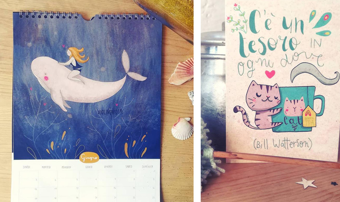 Violinoviola nasce dopo gli studi all’Accademia Internazionale di Comics a Roma. Viola, abruzzese di nascita, comincia a trasferire le sue illustrazioni su vari supporti come spille e cartoline, e partecipando a vari eventi sull'artigianato. I suoi soggetti preferiti sono gli animali e la filosofia vegan, la lettura e le streghe! Il suo mondo illustrato con l’aggiunta di scritte colorate rende i suoi messaggi scherzosi e al tempo stesso pieni di significato.