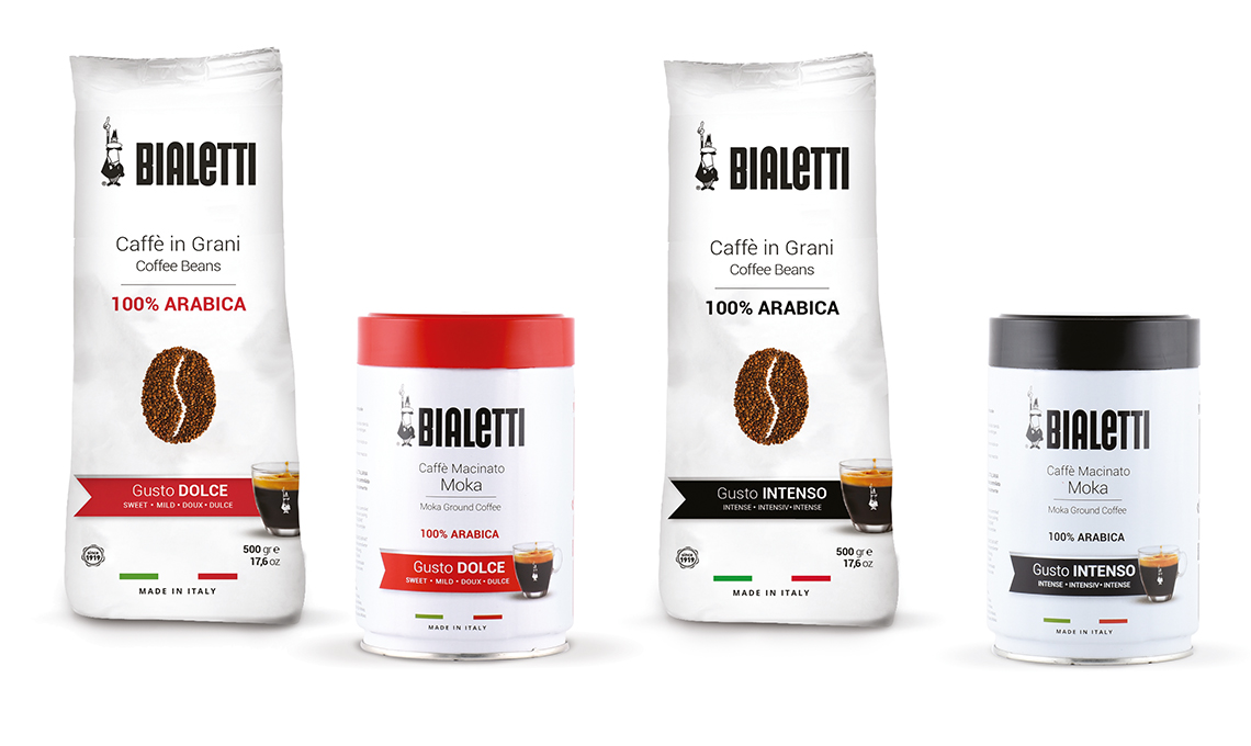Uma nuova e praticissima confezione ermetica da 250 grammi di miscele 100% arabica nelle varianti Gusto Dolce ai sentori di cereali e vaniglia, Gusto Intenso dall'aroma corposo al sentore di cacao e Gusto Nocciola perfette per la preparazione del caffè con la moka. Gusto Dolce e Gusto Intenso sono disponibili anche in grani in confezioni da 500 grammi.