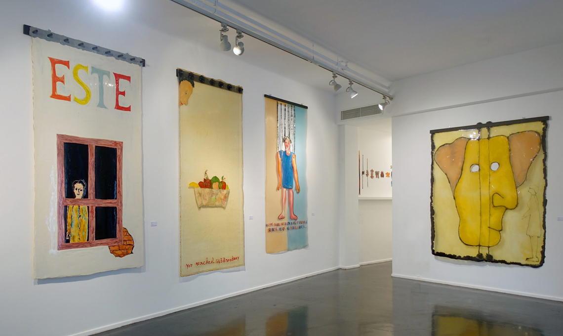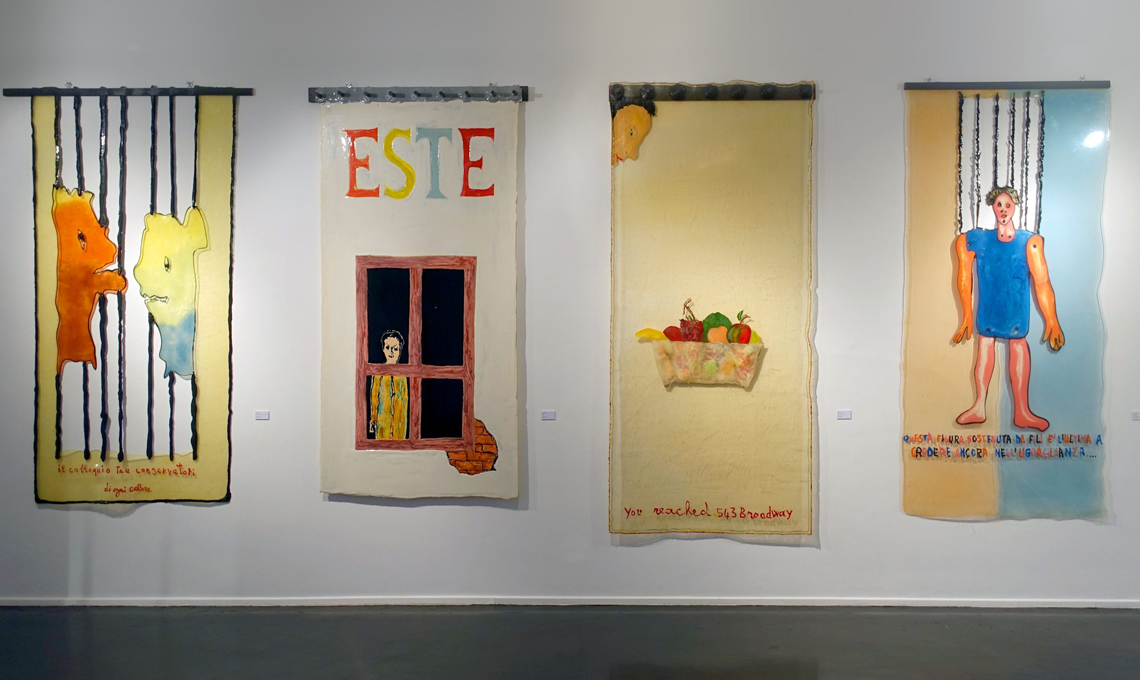 Per la prima volta Gaetano Pesce esponeva disegni montati a muro realizzati con la resina e soprannominati “pelli” per la loro lucentezza e flessibilità.