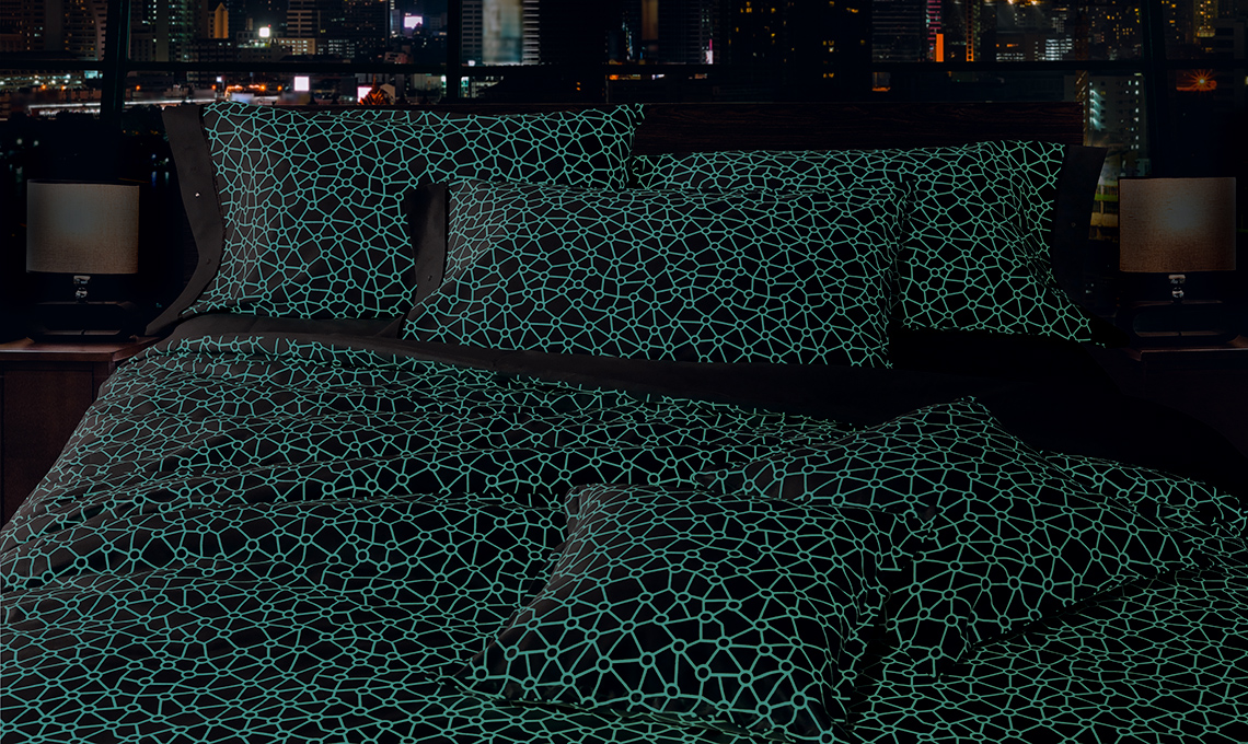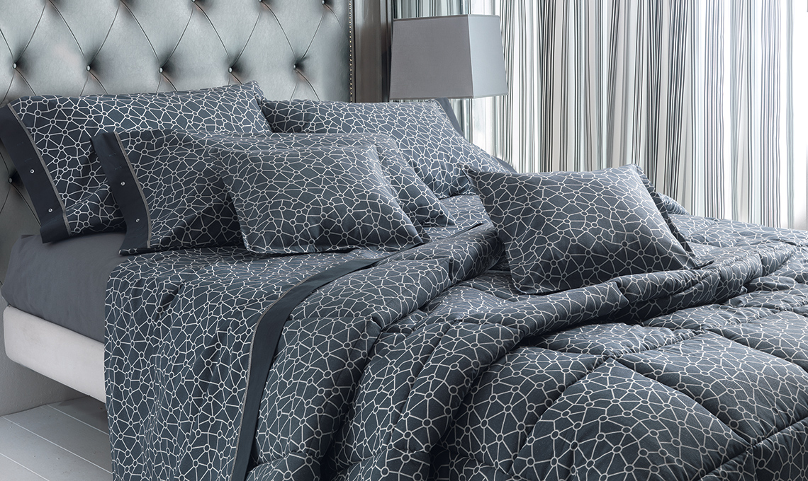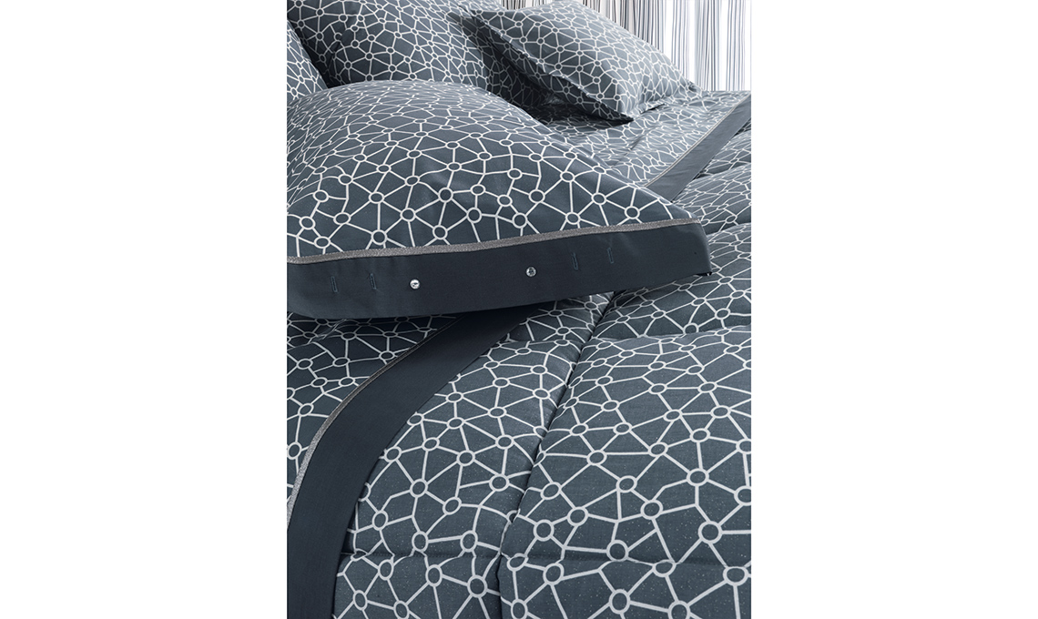Composta da completi lenzuolo, copripiumino e trapunte, Notturno crea una nuova atmosfera, in ogni momento della giornata.