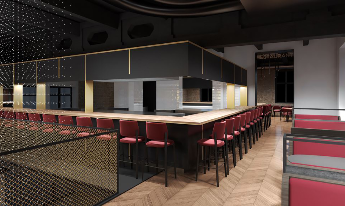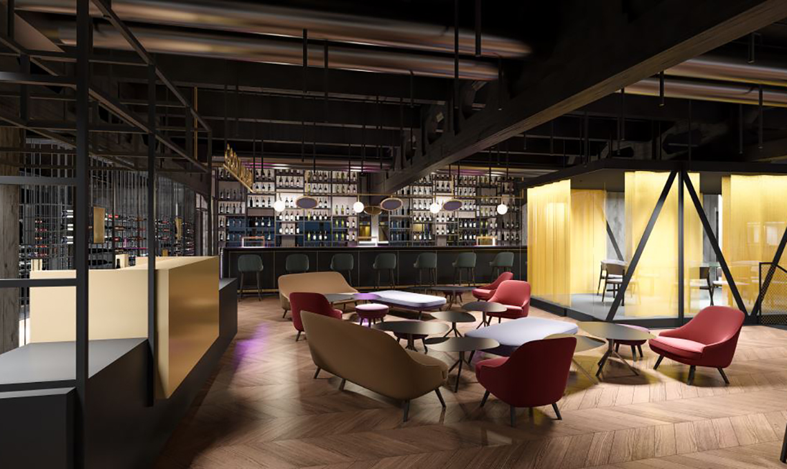 - Il Cocktail bar: una grande area lounge dedicata all’arte della mixology e del food pairing (l'associazione di più ingredienti in base al loro composto molecolare e aromatico). A gestire il bar saranno i proprietari di Barz8, maestri del bartending a livello nazionale. Qui ci saranno anche una cantina a vista e una sala esclusiva, in parte sospesa nel vuoto e posta tra il bar e il ristorante.