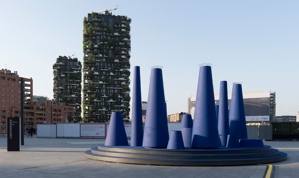 LightHenge è un’installazione di luce e suoni che rende scenografica e condivisa l’idea di energia urbana. - dichiara l’architetto Stefano Boeri - Di notte la piattaforma LightHenge diventa un accogliente satellite, che proietta nel cielo i suoi raggi di luce.