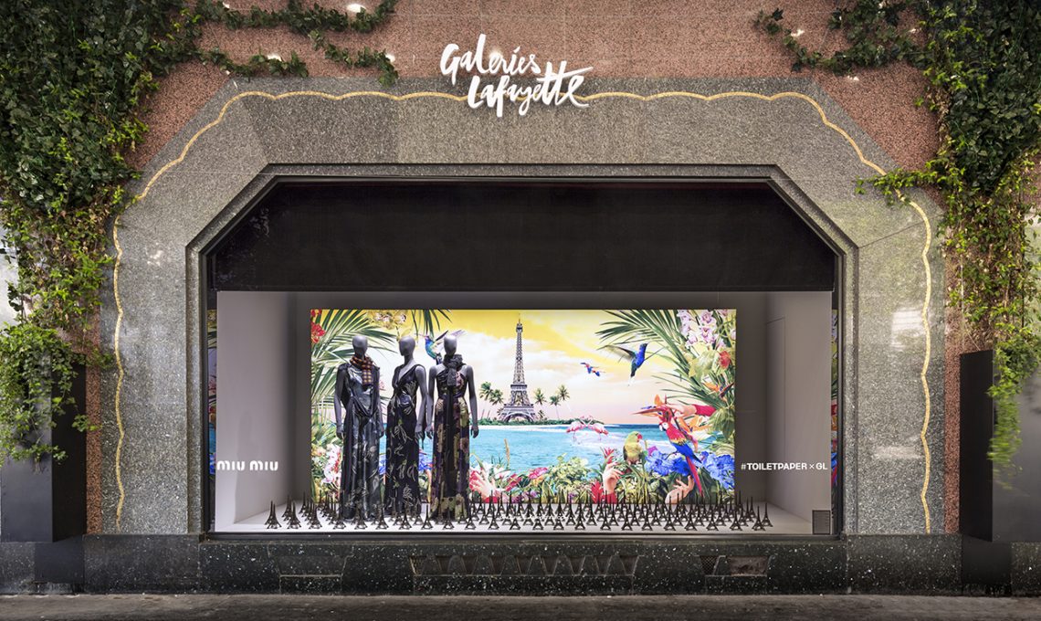 Un nuovo allestimento delle vetrine, una mostra alla Galerie des Galeries e sotto la grande cupola una Tour Eiffel gonfiabile sospesa con alla base due maxi uova, tutto rigorosamente dorato. Questo il grande allestimento alle Galeries Lafayette, lo storico department store parigino, firmato da ToiletPaper - duo creativo formato da Maurizio Cattelan e Pierpaolo Ferrari.
