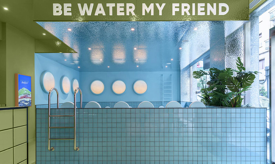 Quella che sembra una piscina è in realtà una delle tre sale del nuovo ristorante Bun di Torino, in via Amendola 9, realizzato da Masquespacio dopo quello di Milano, in viale Bligny 19/A. Non viene voglia di... tuffarsi?