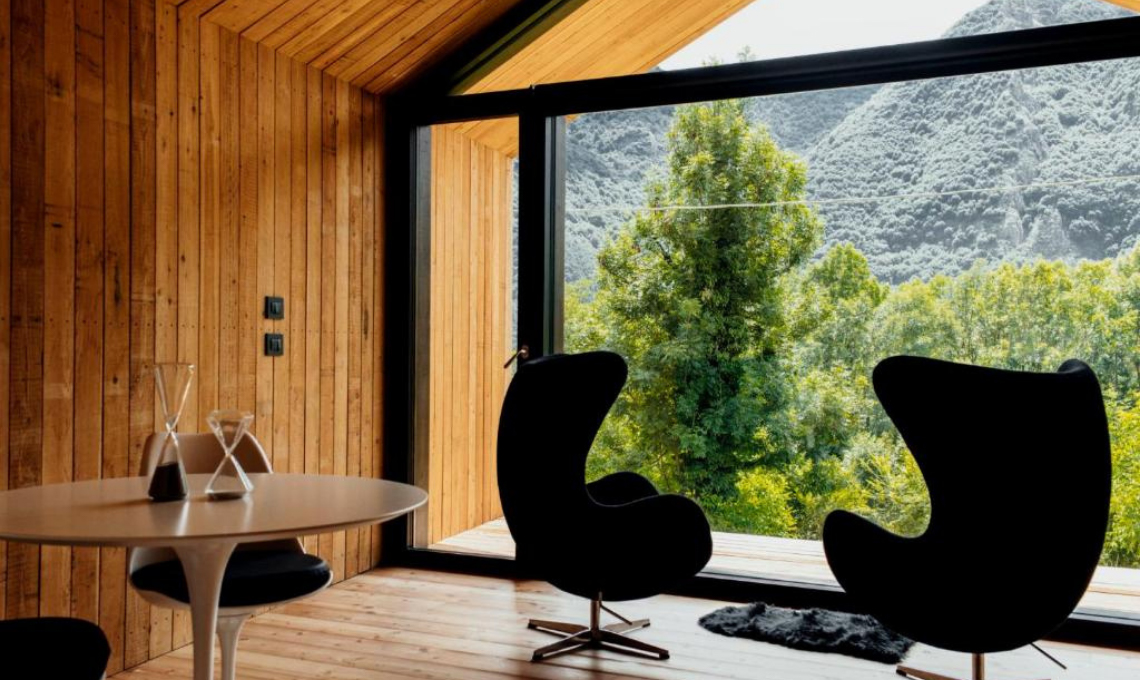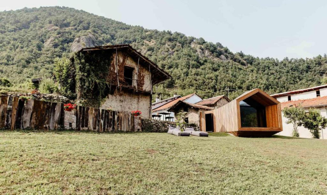 La struttura è stata poi ampliata con una particolare struttura a cannocchiale con interni moderni e d’ispirazione minimal, illuminata da una grande vetrata panoramica sulla valle, la cui copertura - così come tutti i materiali di costruzione - è realizzata in legno a km 0 dell'alta valle Valle Stura, per armonizzarsi nel paesaggio e mettere al centro la bellezza della natura che la circonda.