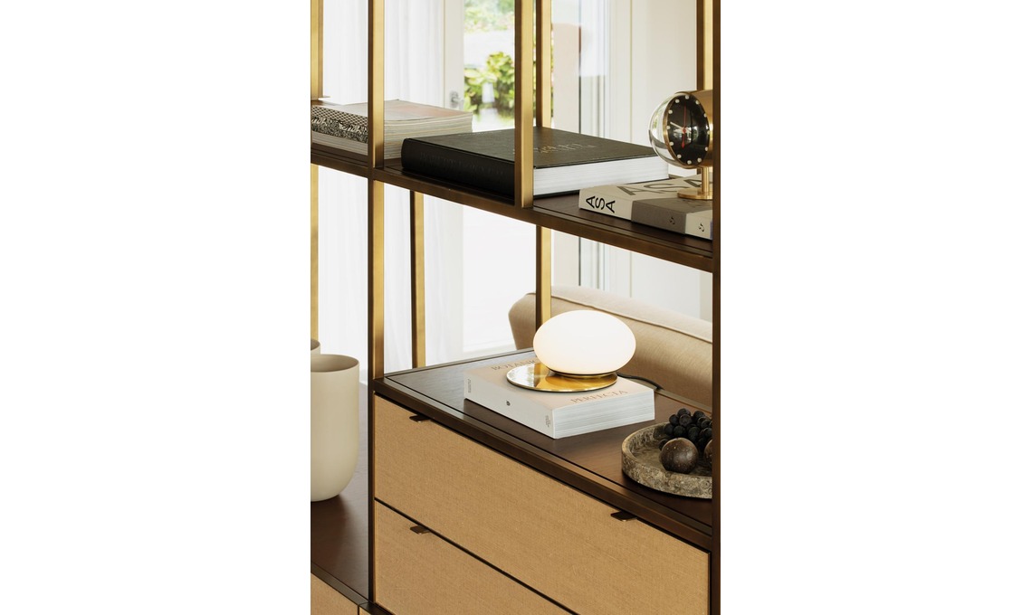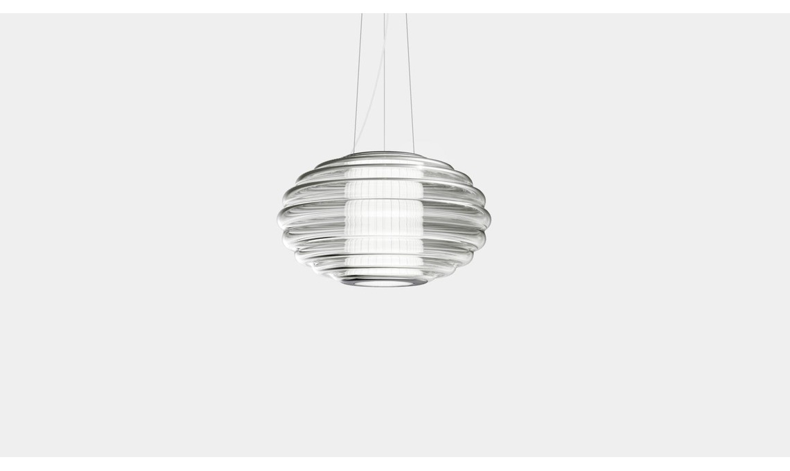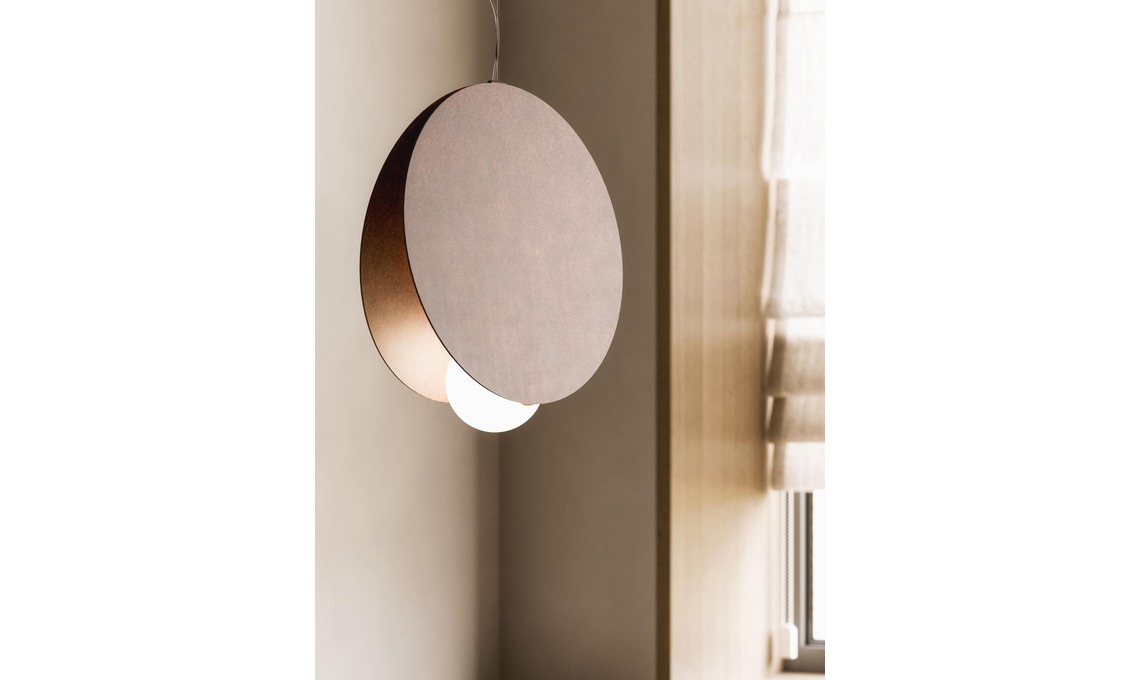 1. Alma, con paralume in tessuto avvolto in una bolla di
