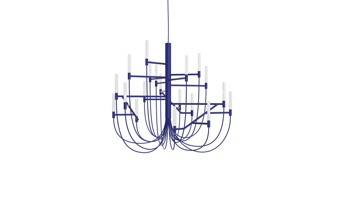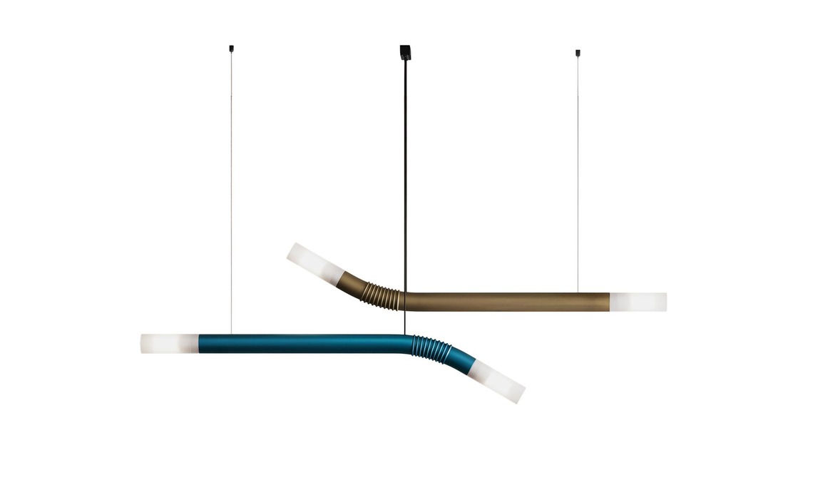 3. Blu Oceano opaco e Ottone satinato per la doppia sospensione Cantabrina con terminali in vetro