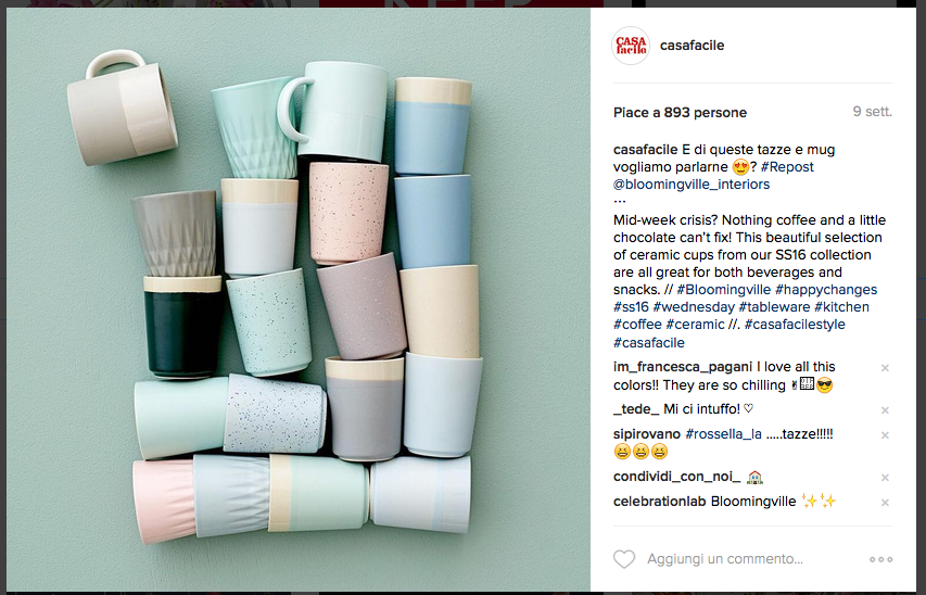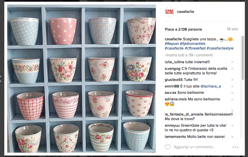 Parlo di Instagram. E mi chiedo perché tazze e tazzine sul profilo di CasaFacile siano 'i nostri gattini'...