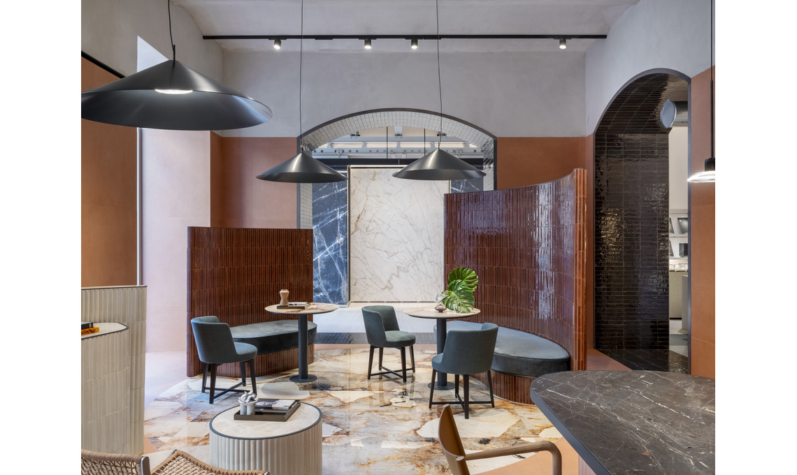 L'ambiente di 400 metri quadri su due livelli è pensato per offrire un'esperienza sensoriale e creativa che va oltre l’esposizione di materiali ceramici: è un luogo di ispirazione dove appassionati, designer e architetti possono esplorare nuove combinazioni, palette cromatiche e abbinamenti originali.