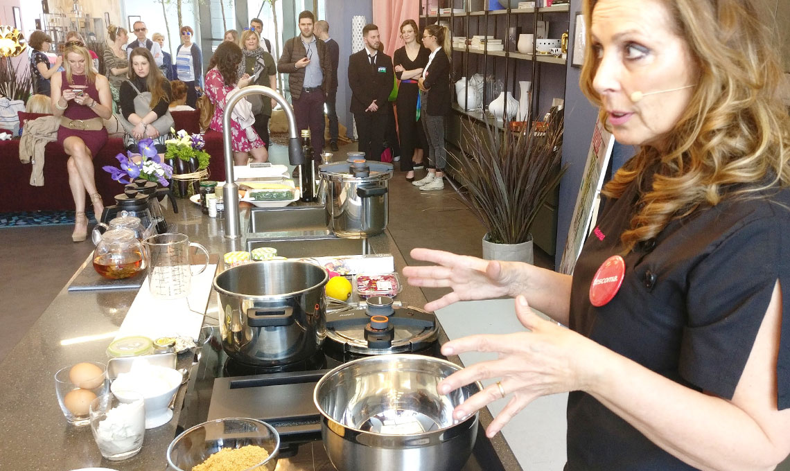 Dopo la premiazione è cominciato il #cfsocialcooking, durante il quale la blogger Cucinama ci ha mostrato come utilizzare la pentola a pressione Tescoma in modo facile, veloce ma anche alternativo, ad esempio per preparare delle mini cheesecake.