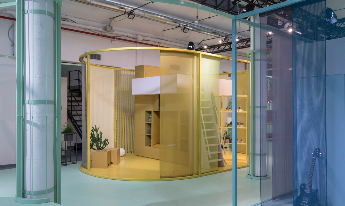 L'approccio alla base del design consente ad ogni unità di esprimere le singole personalità dei propri residenti allo stesso tempo, sottolineando la varietà e la portata del concetto. Le unità abitative sono incorporate in uno spazio condiviso che incorpora funzioni come una cucina in comune, un'area fitness e un atrio. L'installazione adotta strutture esistenti - ad es. pilastri e montanti - e li integra con funzionalità aggiuntive. Il risultato è un micro-quartiere autonomo e vivente in un vecchio capannone industriale. L'installazione evidenzia che anche l'interno di un edificio vuoto può essere utilizzato per arricchire il futuro dell'architettura urbana. Dimostra come i magazzini inutilizzati, i centri commerciali abbandonati e gli uffici possano essere trasformati in potenziali spazi abitativi.