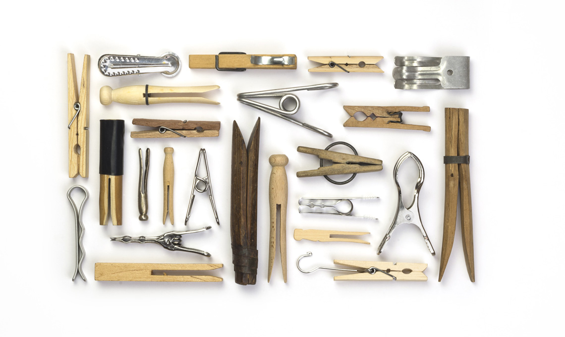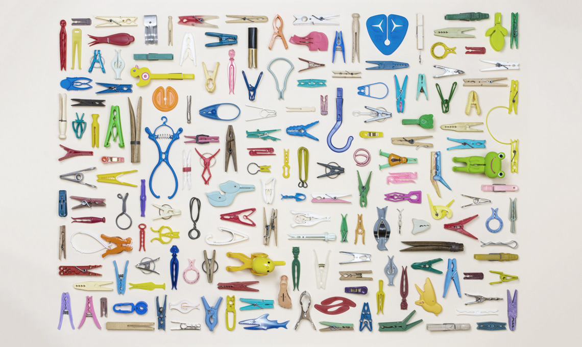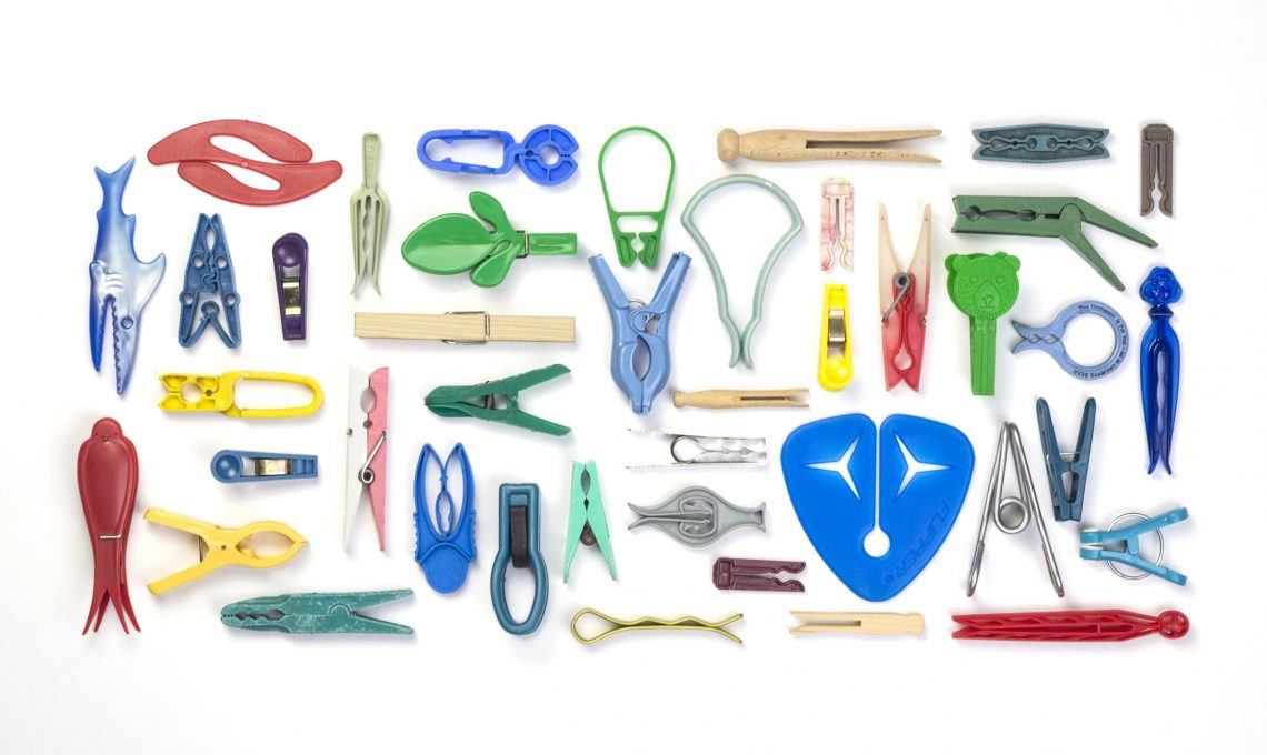 Una veduta dell'allestimento della mostra "Mollette da bucato" alla Triennale di Milano