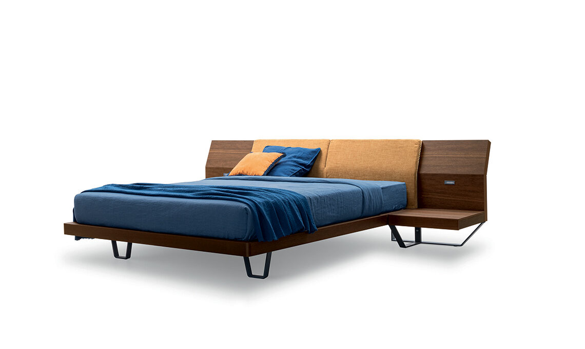 Il letto Skin ha la testata che si può estendere fino a comprendere i top comodino e per il massimo comfort ha una pannellatura retrotesta imbottita [Zanette]. L'abbiamo abbinato con: