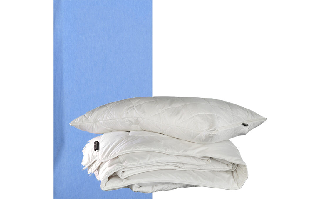 • Piumino Argali imbottito in lana tibetana rivestito in cotone e lenzuolo Vivacolor in jersey stretch [DaunenStep].