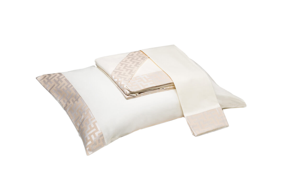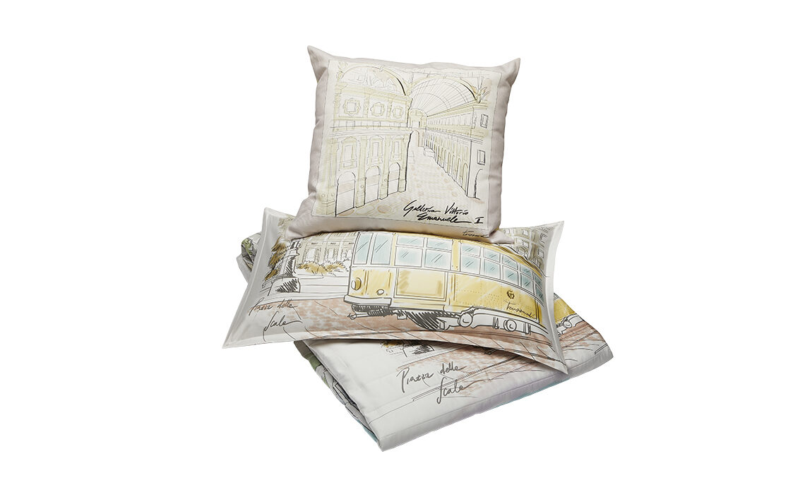 • Le Vie di Milano: cuscino, federa e quilt [Trussardi Home Linen by Mirabello Carrara].