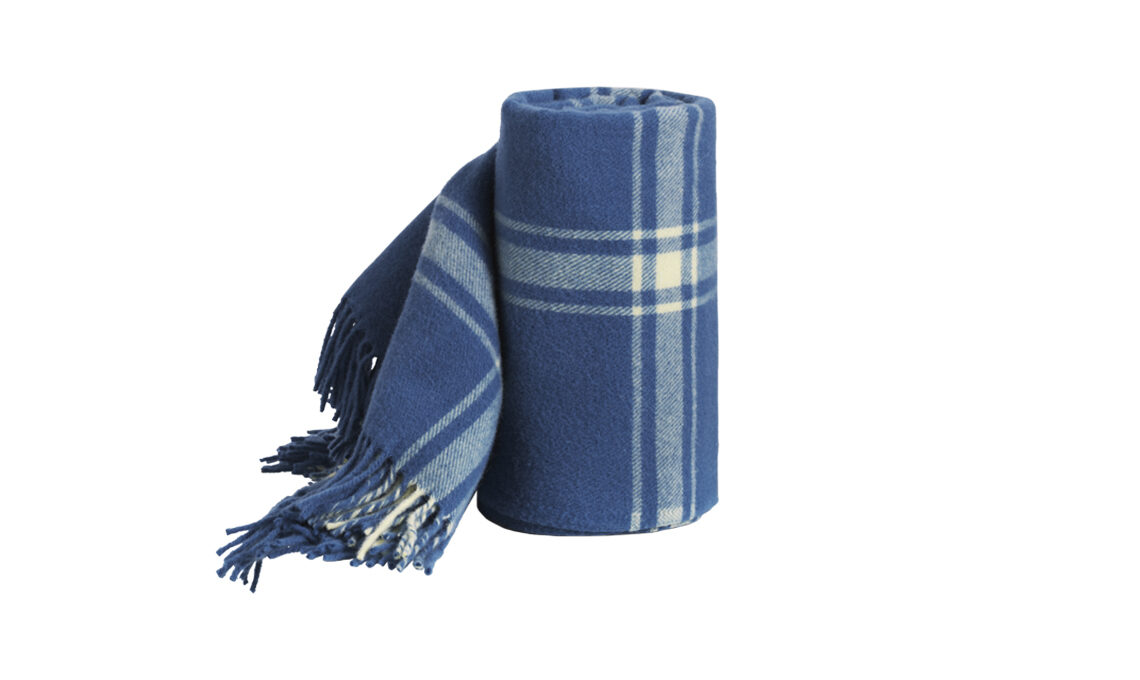 • Coperta Papa in 100% lana della Nuova Zelanda in blu scuro e giallo [Normann Copenhagen].