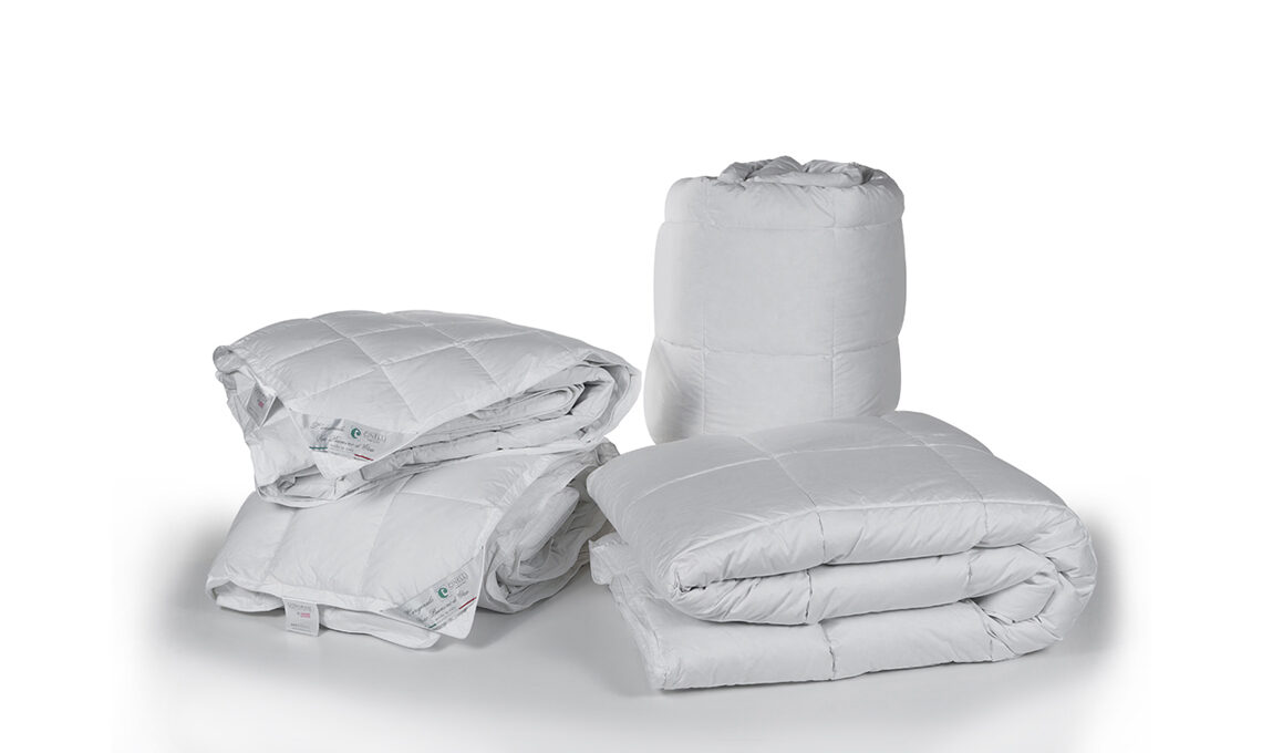 • Trapunta in 95% piumino d’oca bianca ungherese in 3 ‘pesi’: standard, medium e light [Cinelli Piume e Piumini].