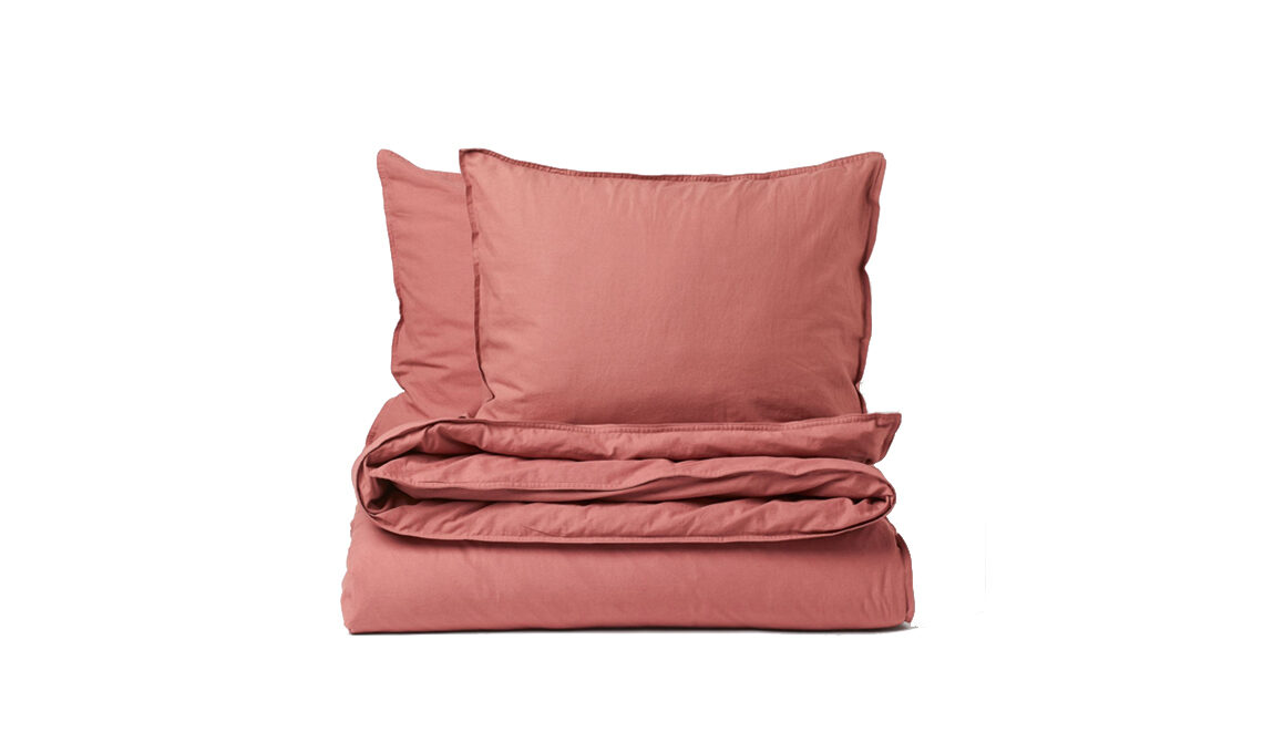 • Set copripiumino Snooze color corallo in cotone certificato OEKO-TEX® [Normann Copenhagen].