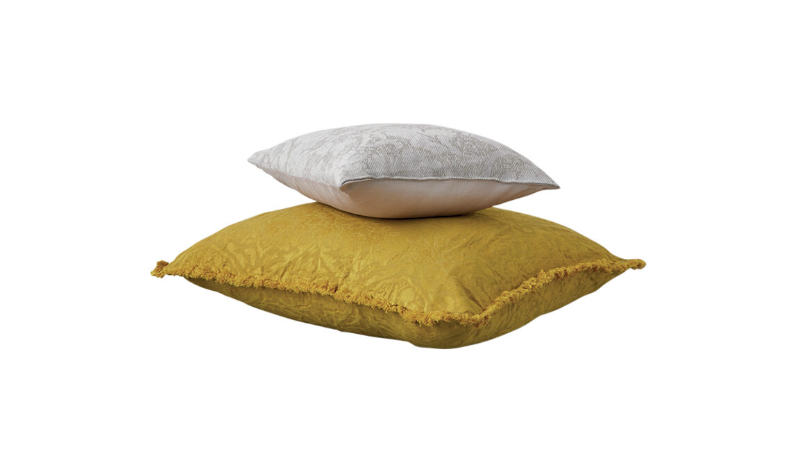 • rapunta Trendy in tessuto jacquard misto cotone oro, imbottito in fibra anallergica effetto piuma [Via Roma 60].
