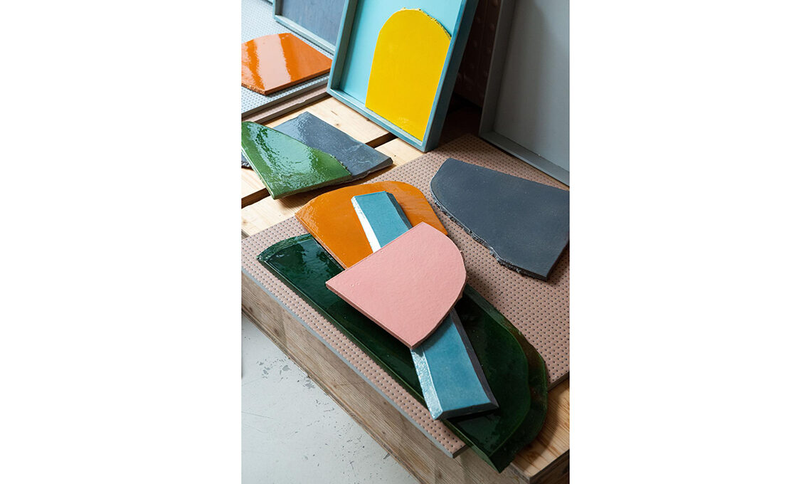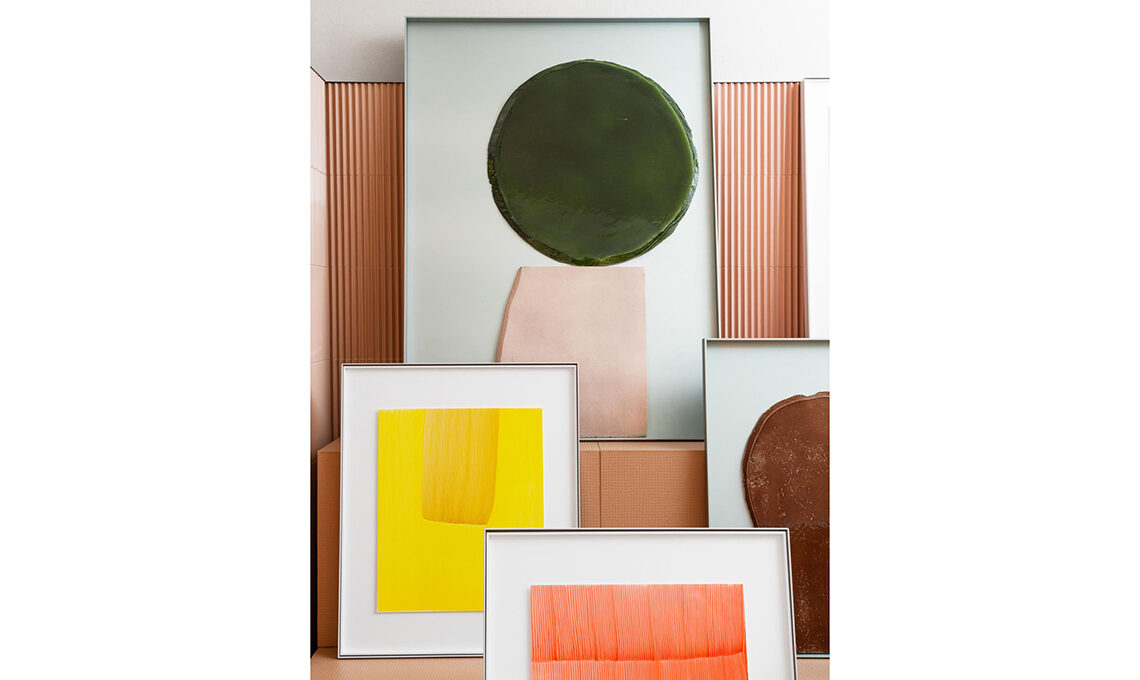 In mostra, disegni dalle linee sinuose e organiche che si intrecciano con la solidità delle cornici ceramiche e dialogano in un gioco di bi e tridimensionalità con le collezioni progettate per Mutina.