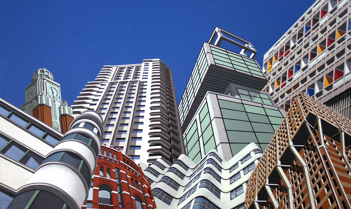 L'artista lavora da più di vent’anni, sulla rielaborazione pittorica delle architetture metropolitane, con una fortissima e progressiva stilizzazione degli elementi che tende, nell’estrema ricerca di sintesi, a sfiorare l’astrazione. L’architettura, nei suoi quadri, diventa qualcosa di pericolante, i suoi edifici iniziano a inclinarsi, a pendere obliquamente come moderne torri di Pisa.