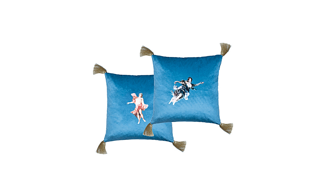 Un occhio stilizzato sul cuscino in velluto Polifemo [Mirabello Carrara, cm 55x30 €70].